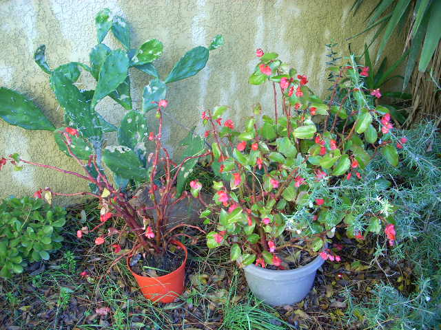 je dirai bégonia...si c'est le cas, les autres experts me corrigeront ou confirmeront, on taille dans le début de l'hiver ..et on abandonne fond du jardin, pas trop d'eau qui stagne et le printemps suivant, ça refleurit.... ici ça descend en dessous de 0 parfois l'hiver....