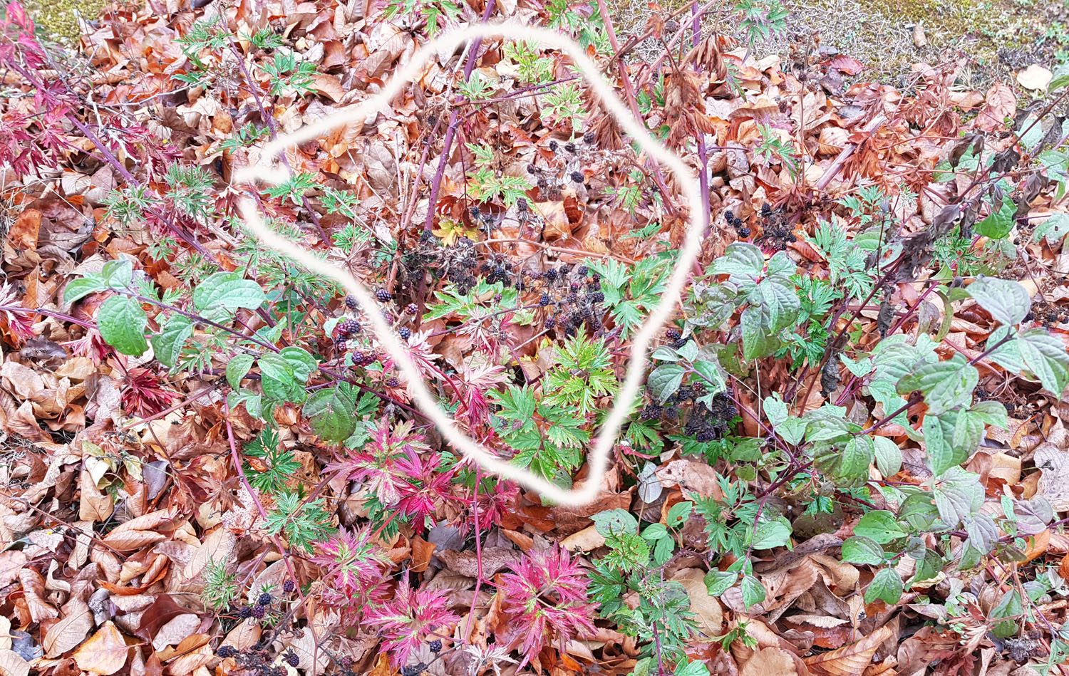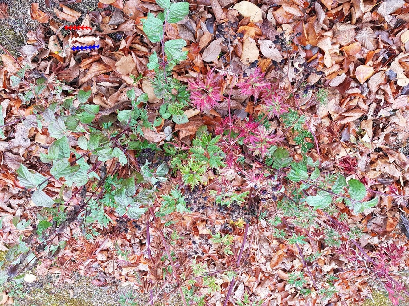pas sur un champ de bataille, pagailleux. Des feuilles rouges, sur un fond de feuilles mortes, ça n'est pas très clair. :wink: