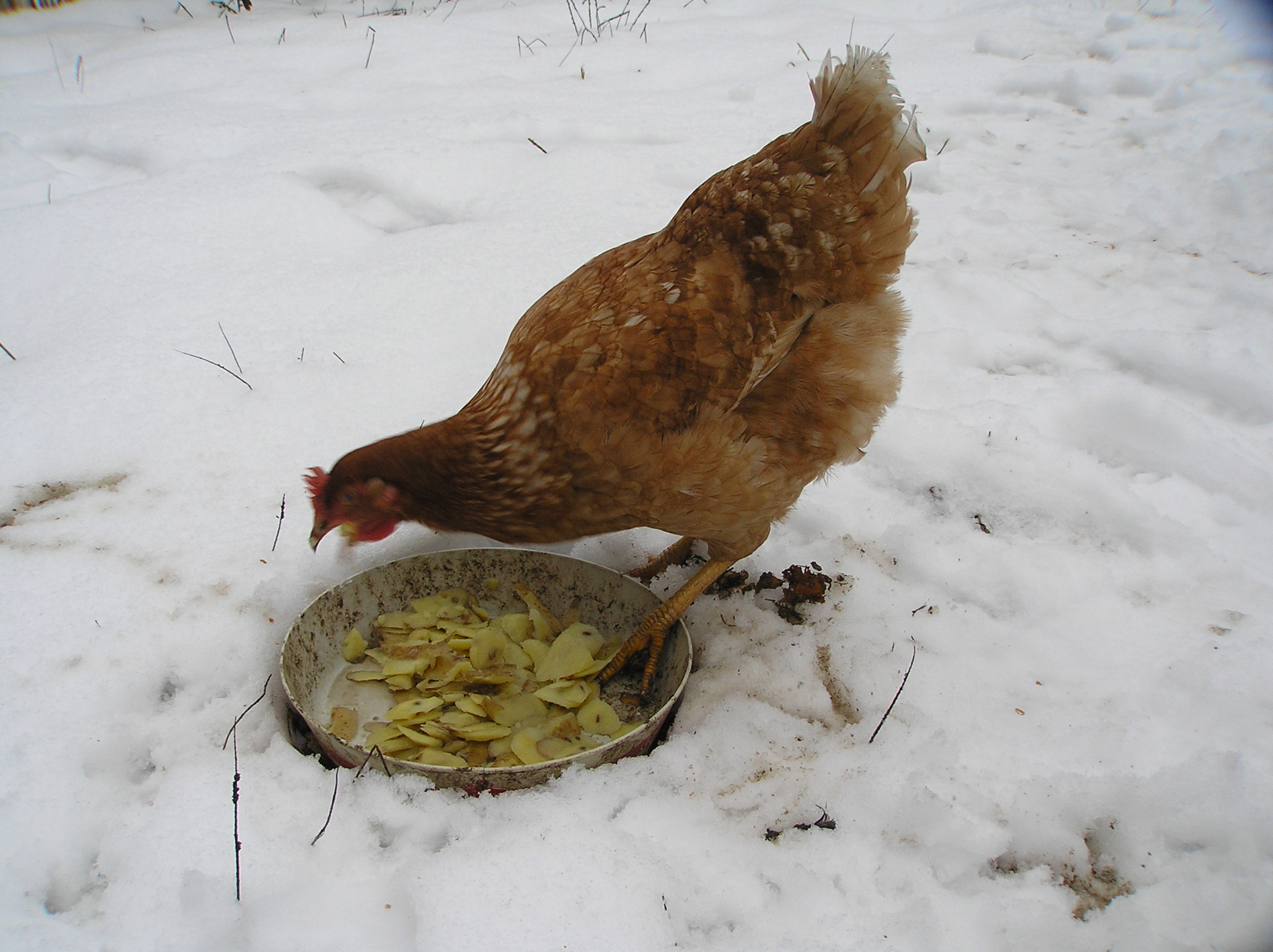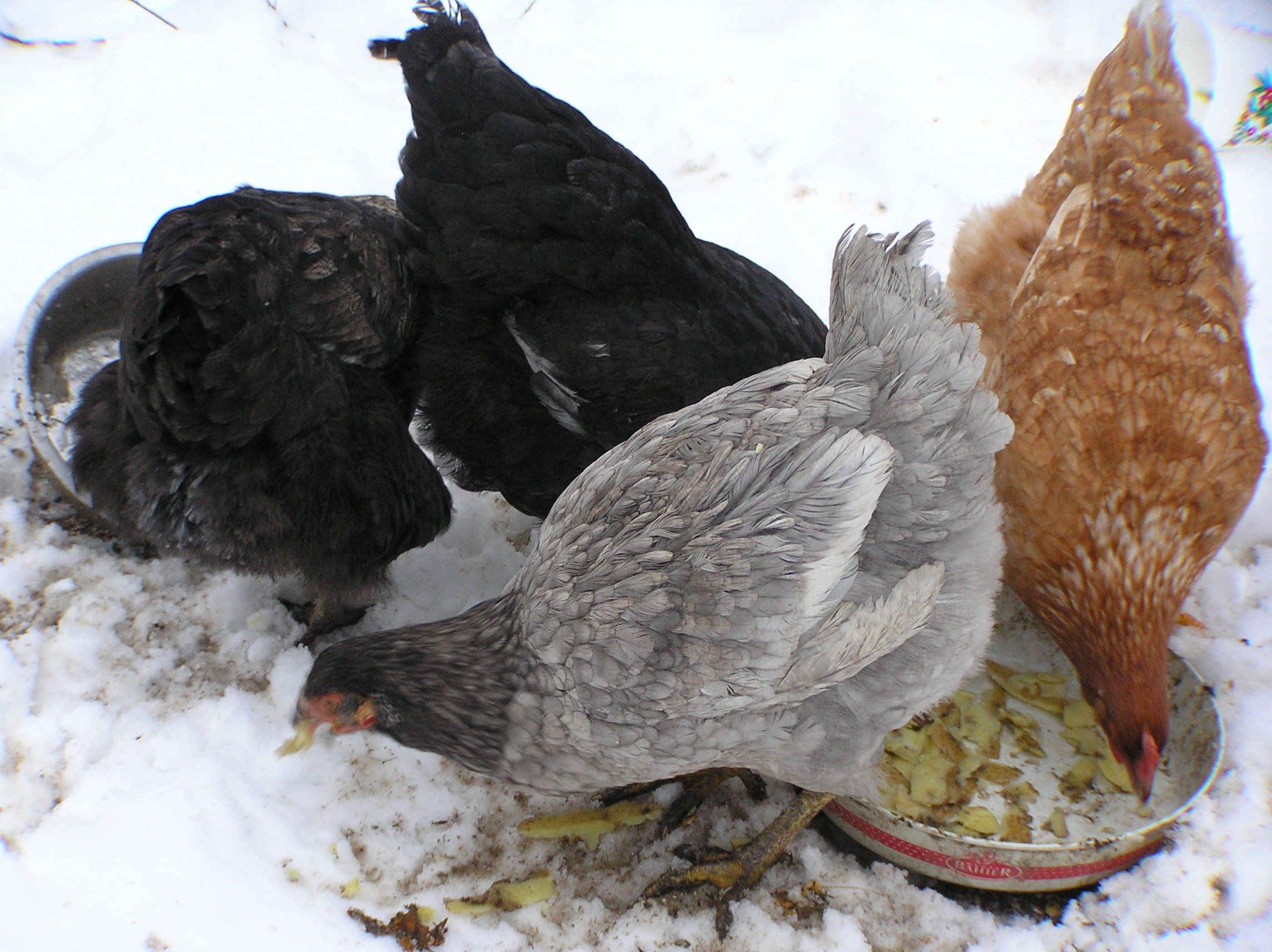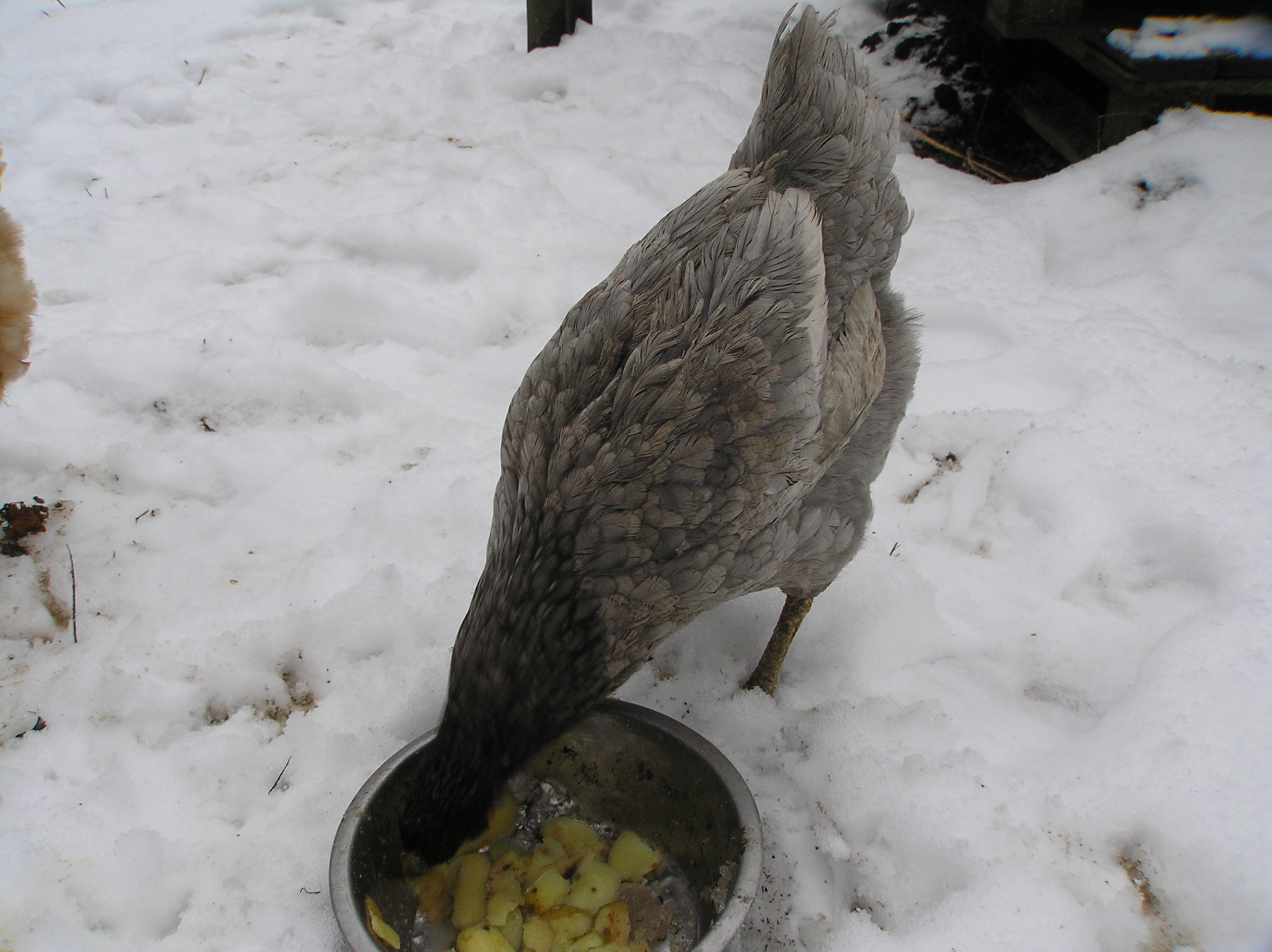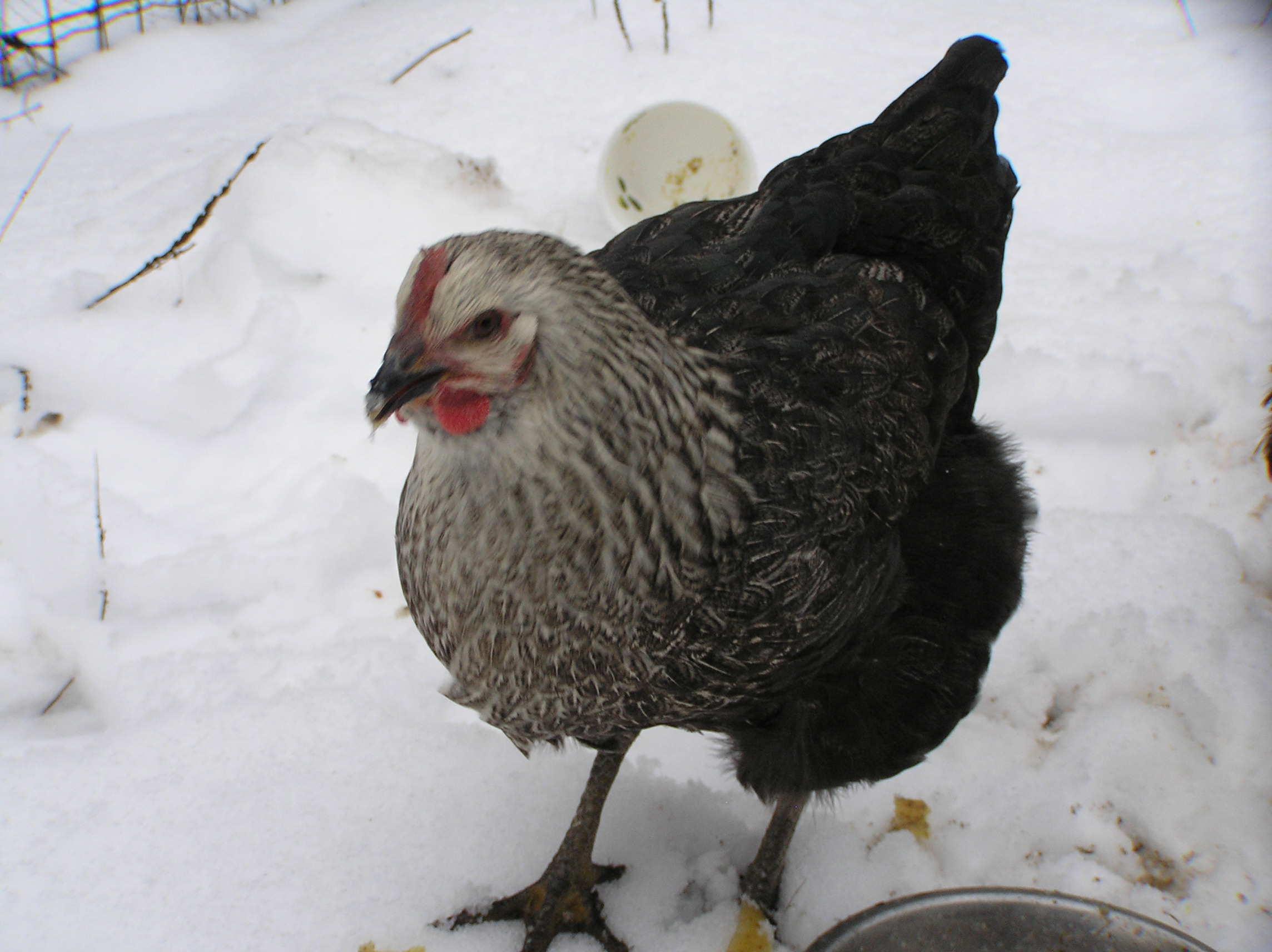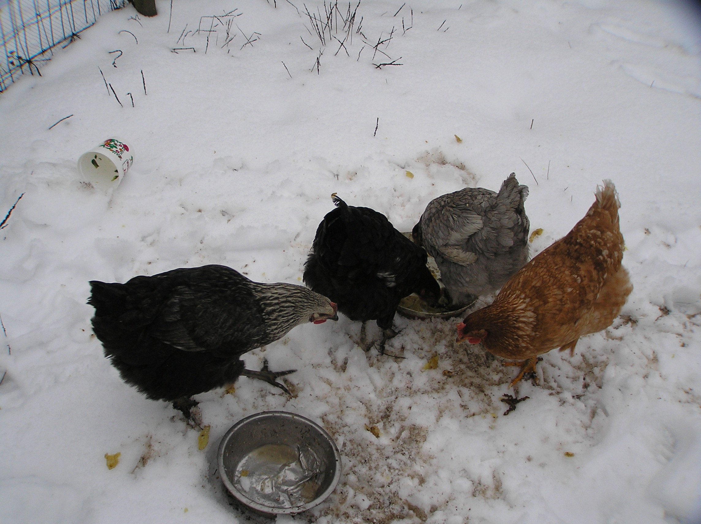 Aujourd'hui la neige fond tout doucement..........trop doucement pour les poules qu'il a fallu encore que je sorts de force de l'abris