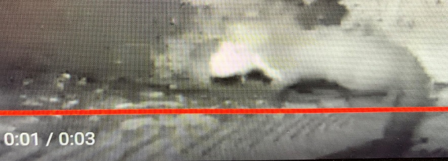 La vidéo est très courte, 3 secondes, et il faut regarder en bas et à gauche. Si l'on est en lecture automatique, une autre vidéo démarre ensuite selon l'ordre Youtube. En changeant la vitesse dans les paramètres Youtube pour mettre 0.25 au lieu de normal, ça laisse un peu plus de temps pour voir la bête. Voilà une capture de mauvaise qualité, je n'ai pas réussi à faire mieux