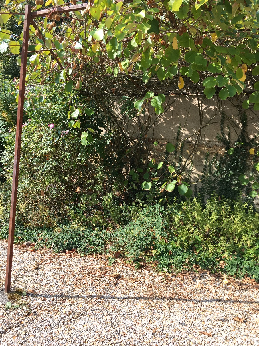 Je voulais dire : n'attends pas d'avoir fiché les quatre poteaux pour mettre en terre ton pied d'Actinidia...