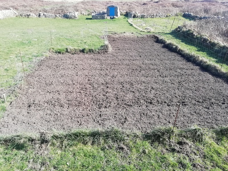 Par contre c'est la 3e année que je mets des PdT à cet endroit, j'ai donc quelques doutes quant au rendement mais on verra bien. Mais ensuite ça sera une année "off" pour le champ de PdT : après la récolte j'y sèmerai de la phacélie, puis de l'orge début octobre, avec 2 options : soit le laisser arriver à maturité pour récolter grains et paille, soit laisser mes oies s'en goinfrer en vert dès que les épis seront formés.