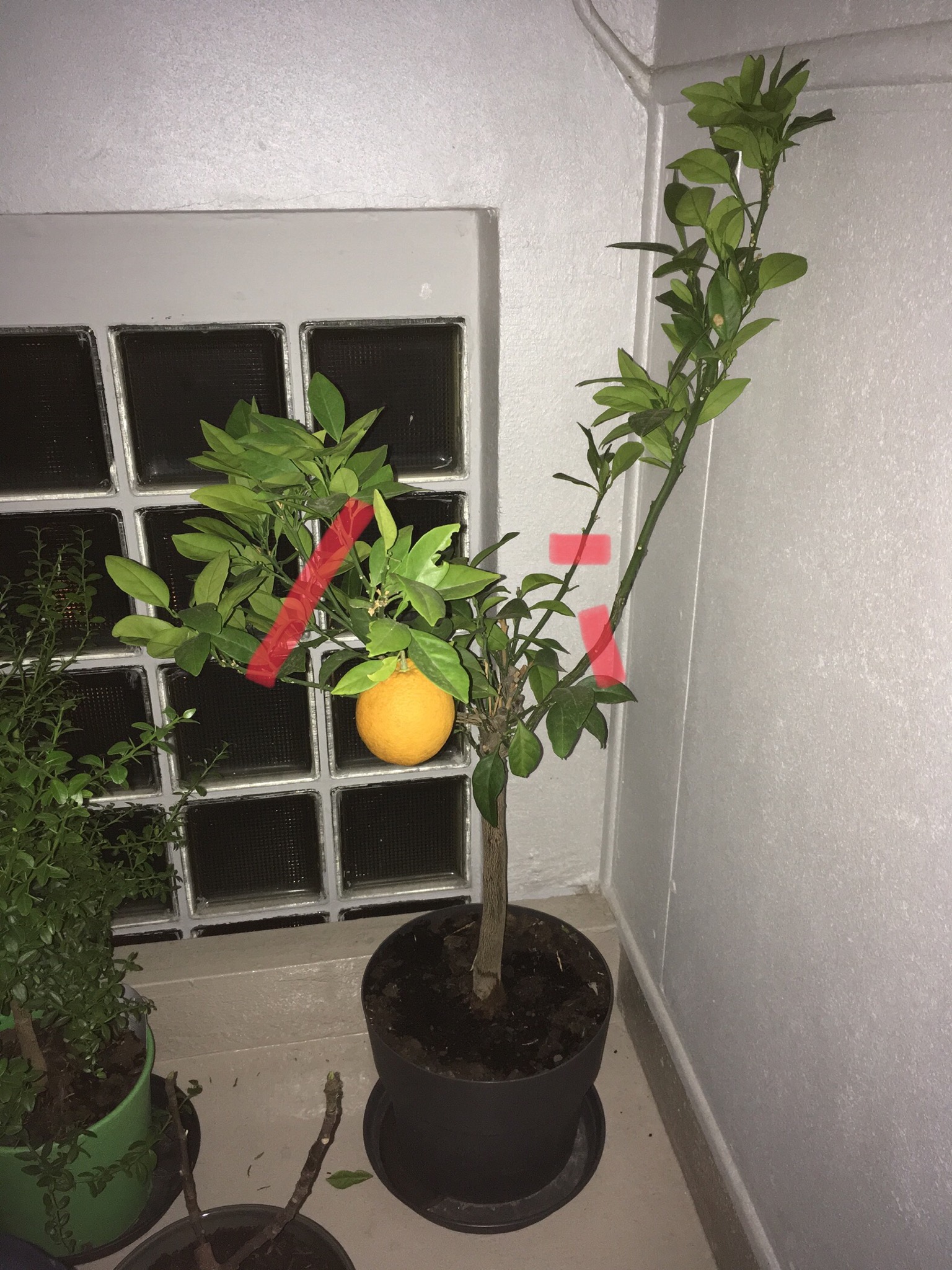 > du coup j’ai enlevé l’orange qui semblait vouloir le plus se décrocher (je n’ai pas tiré dessus) en pensant que peut être il favorise les fruits au détriment des feuilles?