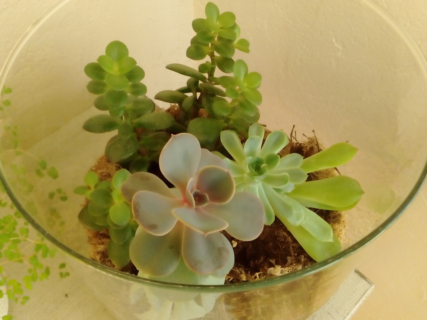 Je ne pense pas que des succulentes se plaisent en terrarium qui est un milieu relativement humide...