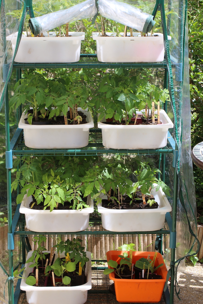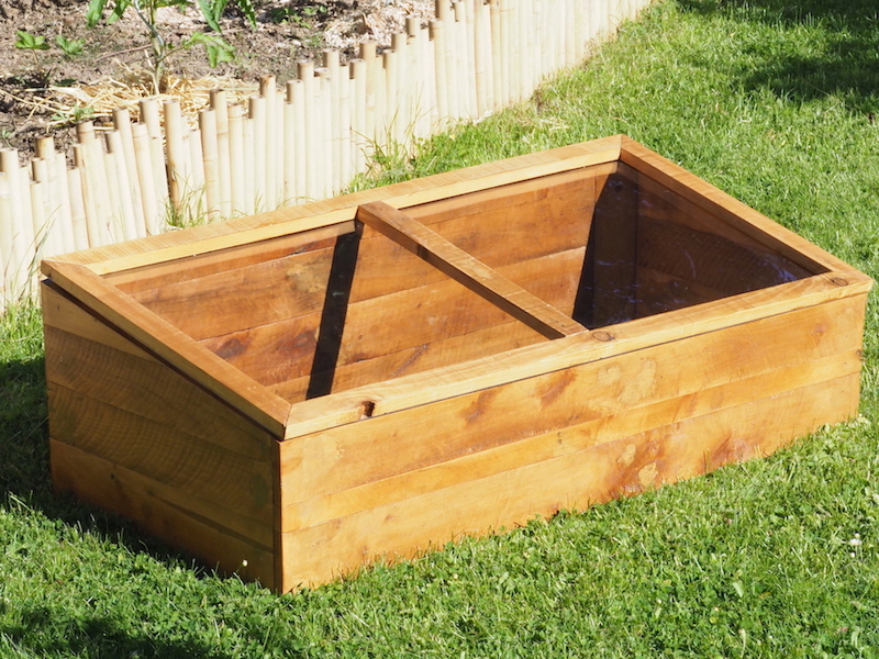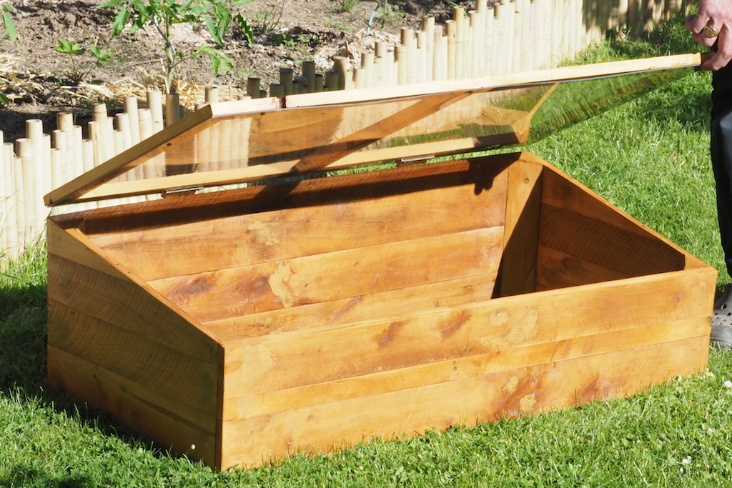 Alors après plusieurs années à jouer avec ça J'ai commandé à Singha (récupérateur invétéré de palettes) une petite serre au départ d'1m2 qui va finir en deux éléments de 50 cm x 1 M. Déjà un de livré en gros oeuvre (j'ai opéré aux finitions = lasure et pose des paumelles) et voila le résultat Magnifique non?