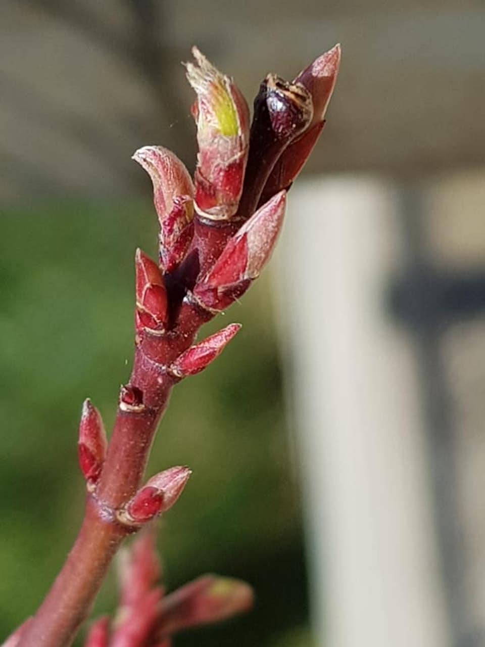 les bourgeons de l'Acer Palmatum Wilson's pink dwarf commencent à éclater, j'espère qu'on aura pas de trop grosses gelées à nouveau