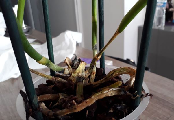 En fait, l'orchidée faisait partie d'une composition et il y avait de la mousse au dessus sur toute la composition.