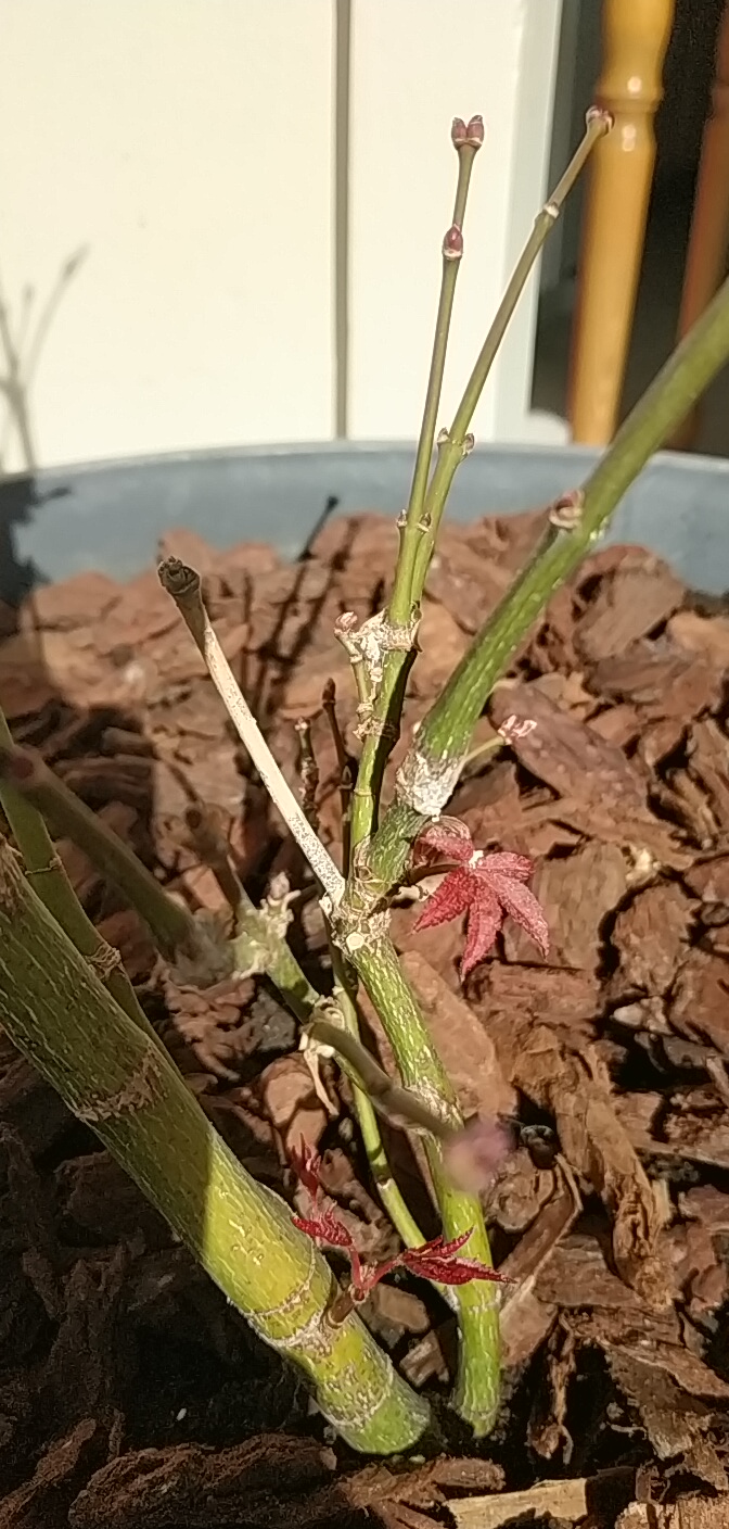 J'ai besoin d'aide pour comprendre ce qui arrive à mon érable du Japon planté en pot depuis au moins 2 ans. Jusqu'ici il n'y avait pas particulièrement de souci. Il a perdu ses feuilles . J'ai pensé que c'était comme d'habitude sauf que là je vois apparaître une poudre blanche. Je dis poudre car en frottant dessus, elle s'en va...mais il me semble que sur certaines parties non...quelqu'un sait ce que ça pourrait être ? Merci