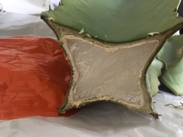 Donc tu coupes au dessus de la zone marron, il ne doit pas y avoir de marron dans la partie que tu vas garder. Tu installes cette partie coupée dans un endroit sec, prévois une feuille de journal ou autre pour mettre dessous dès fois que du latex coule. Tu attends quelques jours, voire semaines, que ça sèche.