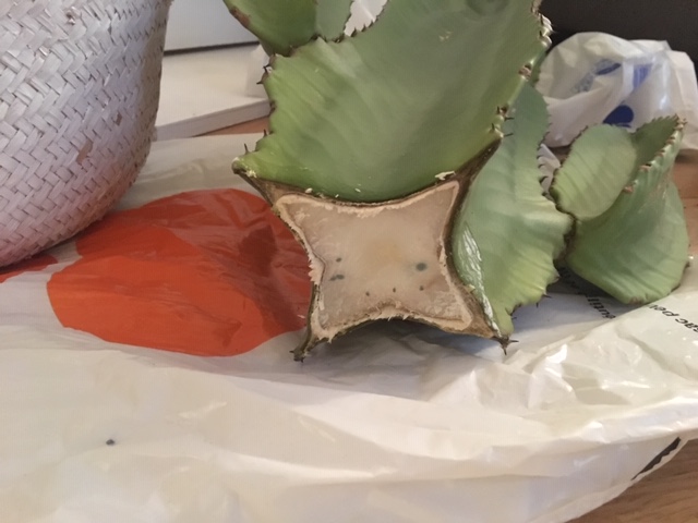 Voici en pj la photo prise ce matin... Après divers check sur internet j'ai vu qu'elle était vraisemblablement en train de pourrir mais la partie noir n'est pas molle et je ne comprend pas pourquoi sachant que je ne l'arrose vraiment pas souvent....