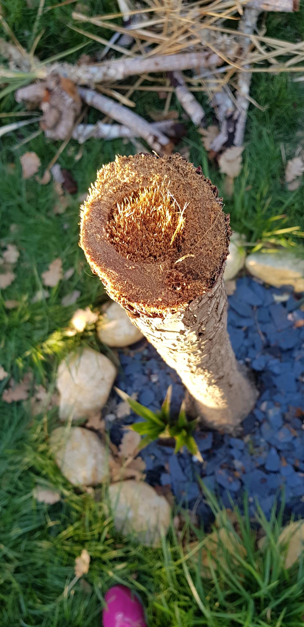 . je vais essayer de le couper plus bas pour voir mais en touchant le tronc j'ai l'impression que c'est mort jusqu'en bas. je ne veux pas de repousse à cet endroit car je pense en acheter un autre déjà grand (si je trouve ...) et je replanterai les rejets déjà présents dans un bac pour ne pas les jeter...
