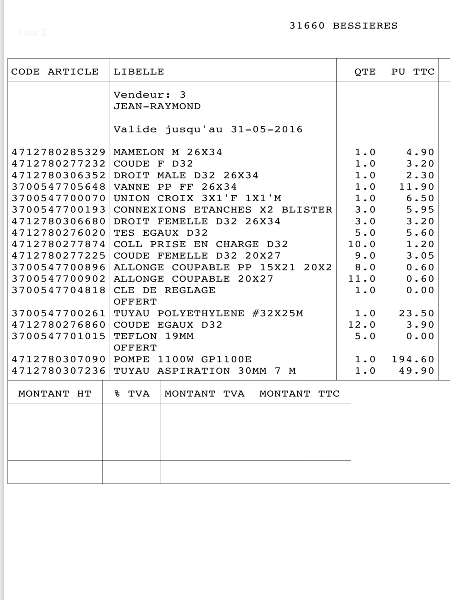 1°/ Sur le devis il n'y a qu'une unique couronne de 25 mètres de tuyu de 32. Toute l'installation a été réalisée en 32 j'espère, au moins les réseaux rose + bleu marine sur le plan ?