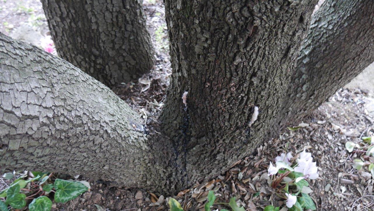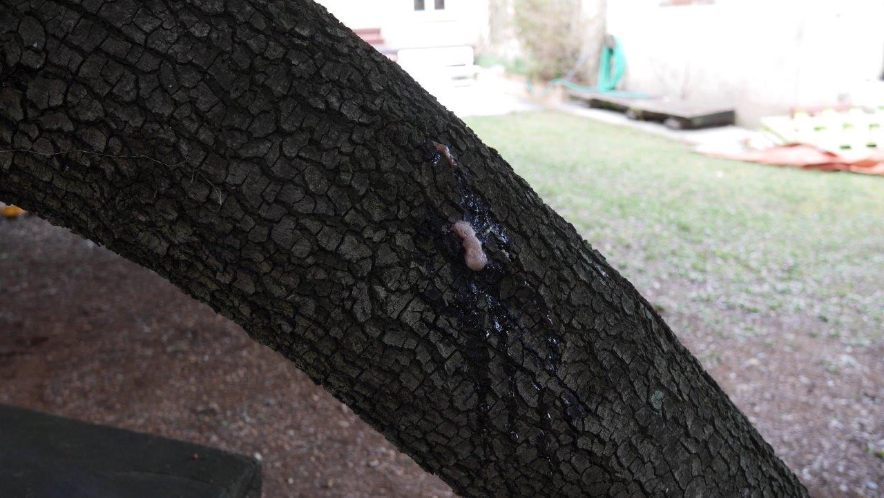 J'ai remarqué des coulures sur les troncs de plusieurs de mes chênes verts qui collent un peu comme de la résine de pin .