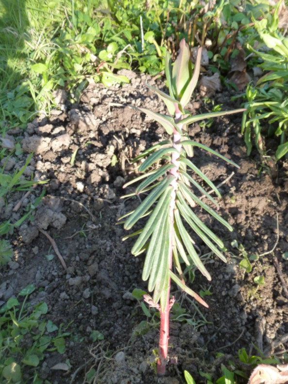 ca ressemble a Euphorbia lathyris. Moi je l'aime bien mais c'est vrai qu'elle peut faire son nid rapidement.