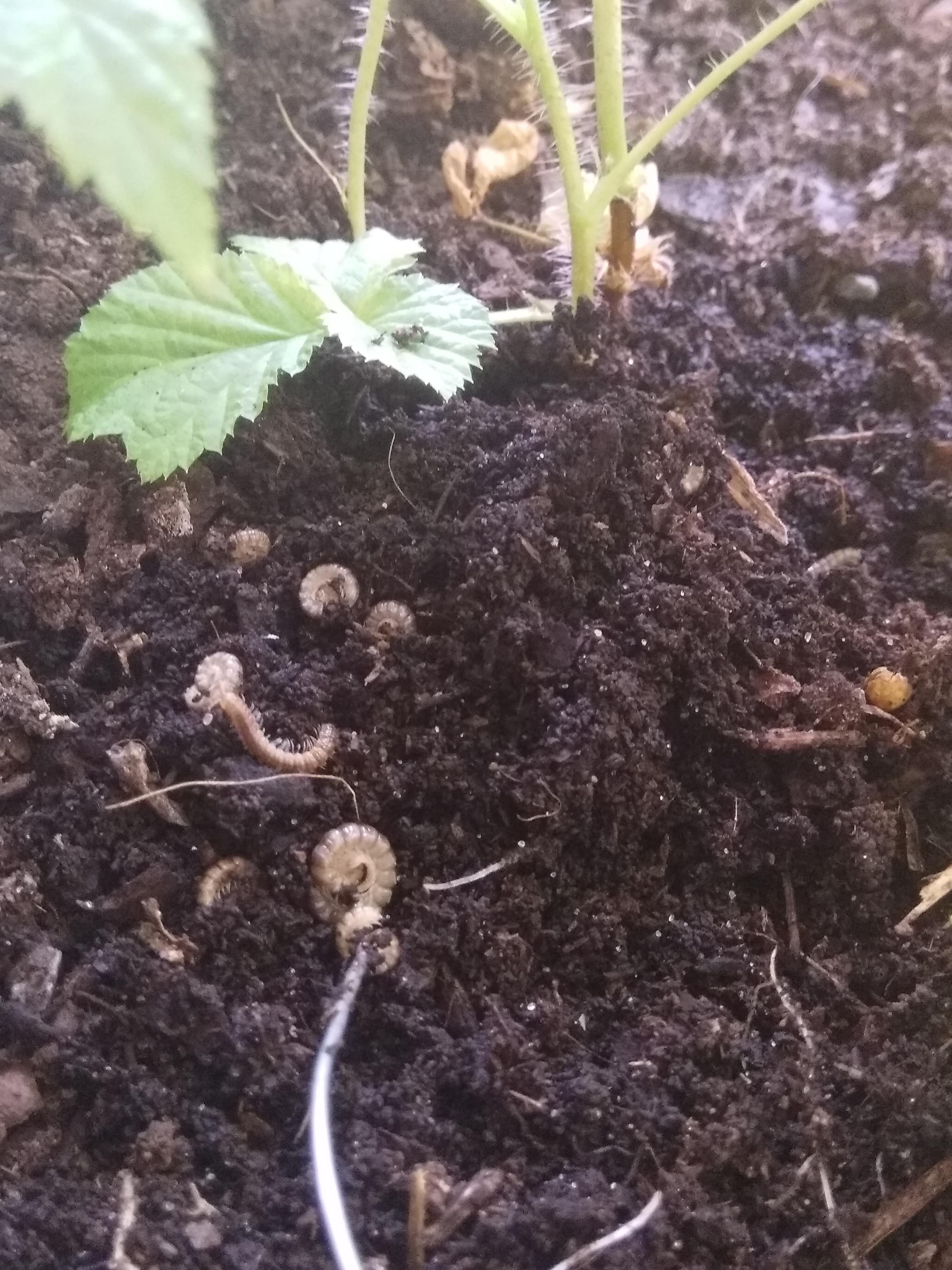 Cela m'inquiète aussi parce que mon pot semble en être envahi. Auparavant, j'en ai trouvé seulement une dizaine quand je retournais la terre pour l'aérer mais là il y en a qui se promène à la surface de la terre et j'ai juste touillé 2cm² avec un trombone j'en ai retrouvé cinq dont certaines qui s'enroulaient autour de la tige du trombone. C'était au début de toutes petites chenille mille-pattes je ne sais pas trop et là il y en a qui font 1 à 2 cm de long.