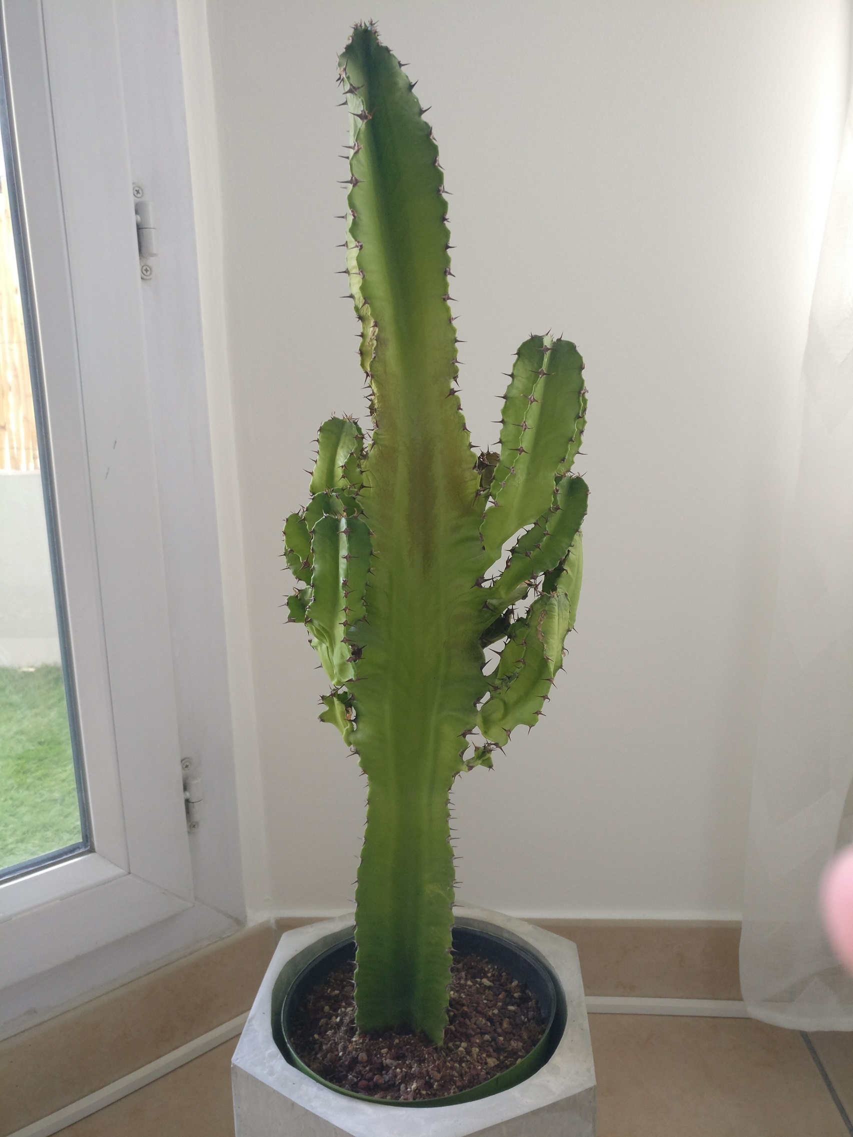 Elle est placé à environ 80cm d'une grande fenêtre plein sud. En dessous de cette fenêtre il y a un chauffage, donc à environ 60cm de mon euphorbe.