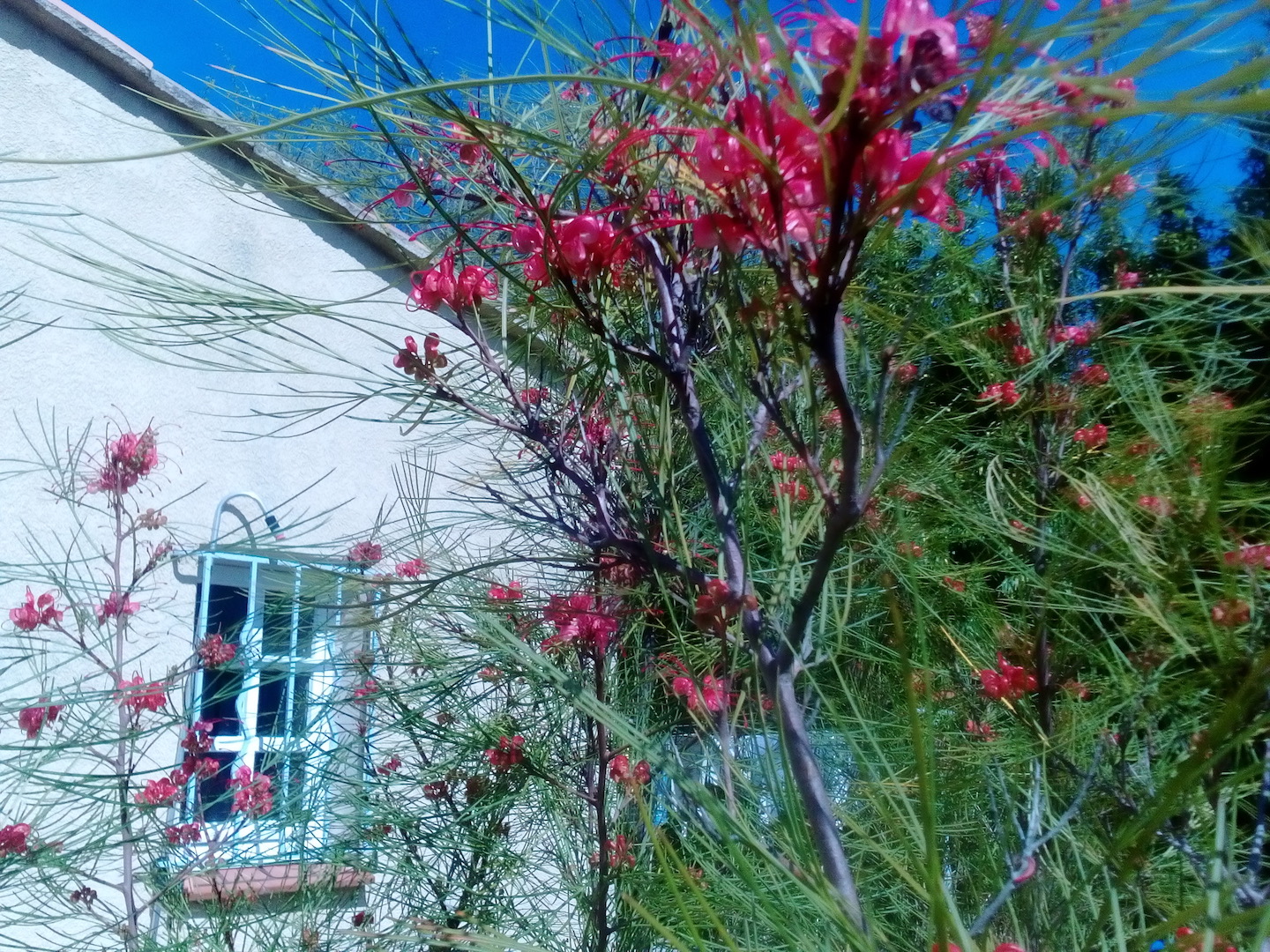 il a été planté il y a 9 ans par un paysagiste et je n'arrive pas à me souvenir de son nom..pas un mimosa non, mais les fleurs sont des petites graminées jaunes..à la belle saison....je viens de le faire un peu tailler, comme le reste d'ailleurs..... Ce sont des plantes plutôt méditerranéennes.....
