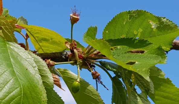 Celles du grand morceau greffé, ce ne sont pas des merises mais bien des burlat...