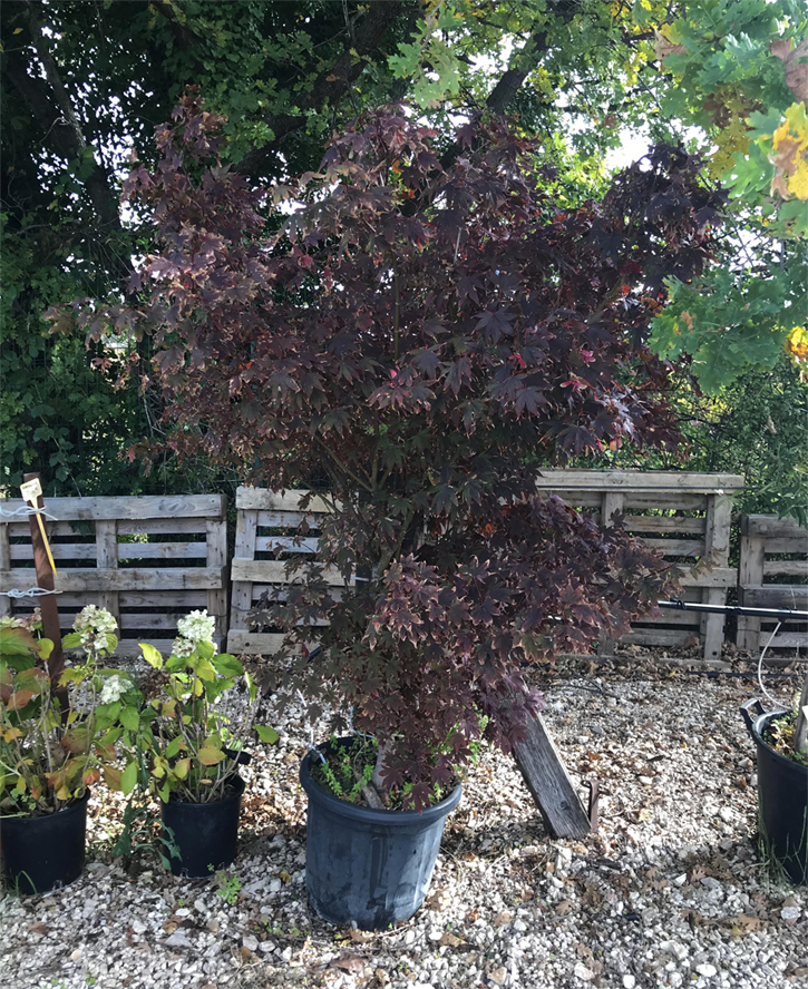 J'ai un autre bloodgood qui a super bien traversĂ© l'Ă©tĂ©, il a toutes ses feuilles, c'est incroyable. Au soleil au printemps, puis mi ombre puis re-soleil a l'automne. Chez moi en climat mediterannĂ©en l'air est sec + le vent donc mes cadences d'arrosage doivent ĂȘtre adaptéés. J'ai commencĂ© a l'arroser abondamment a partir de mi mai ( container de 35 litres) a hauteur de 2 litres le matin et 2 litres le soir, substrat tres drainant. au final il est comme neuf.