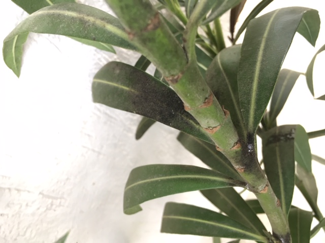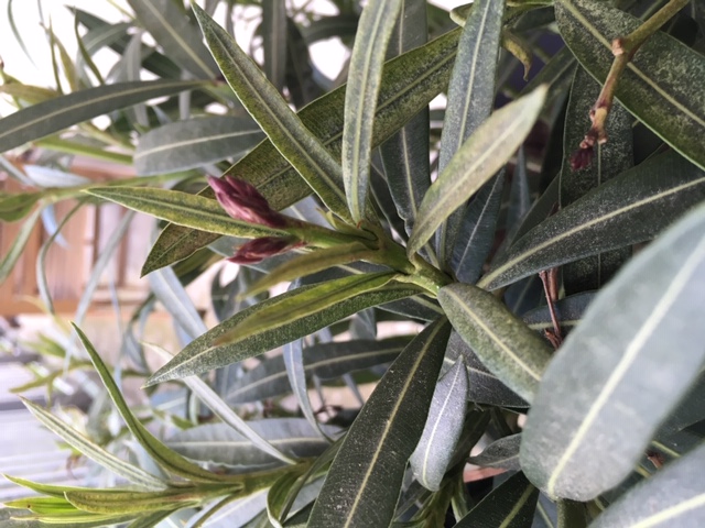 J’aurais besoin d’un coup de main d’un connaisseur car mon laurier rose semble malade. C’est un laurier en pot, sur un balcon. Il était en forme au printemps dernier mais à la fin de l’été les feuilles ont blanchies et se sont recourbées. Il a aussi des dépôts noirs sur certaines feuilles et tiges.
