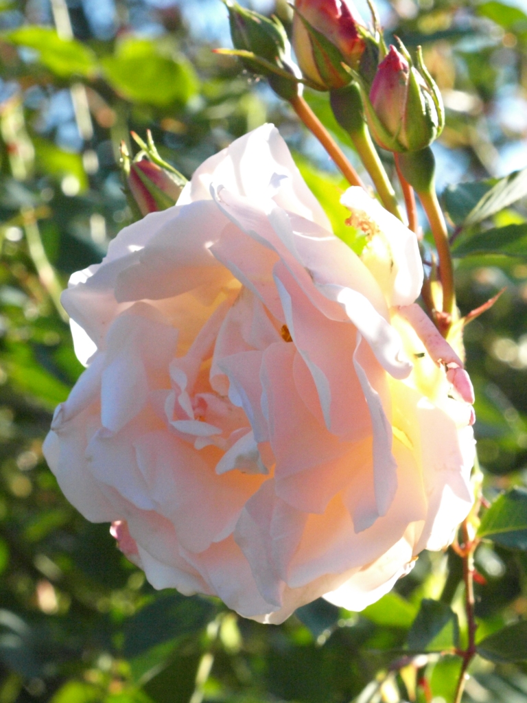 Parmi les éclosions récentes, un rosier ancien, charmant, parfumé, mais un peu mou des genoux,