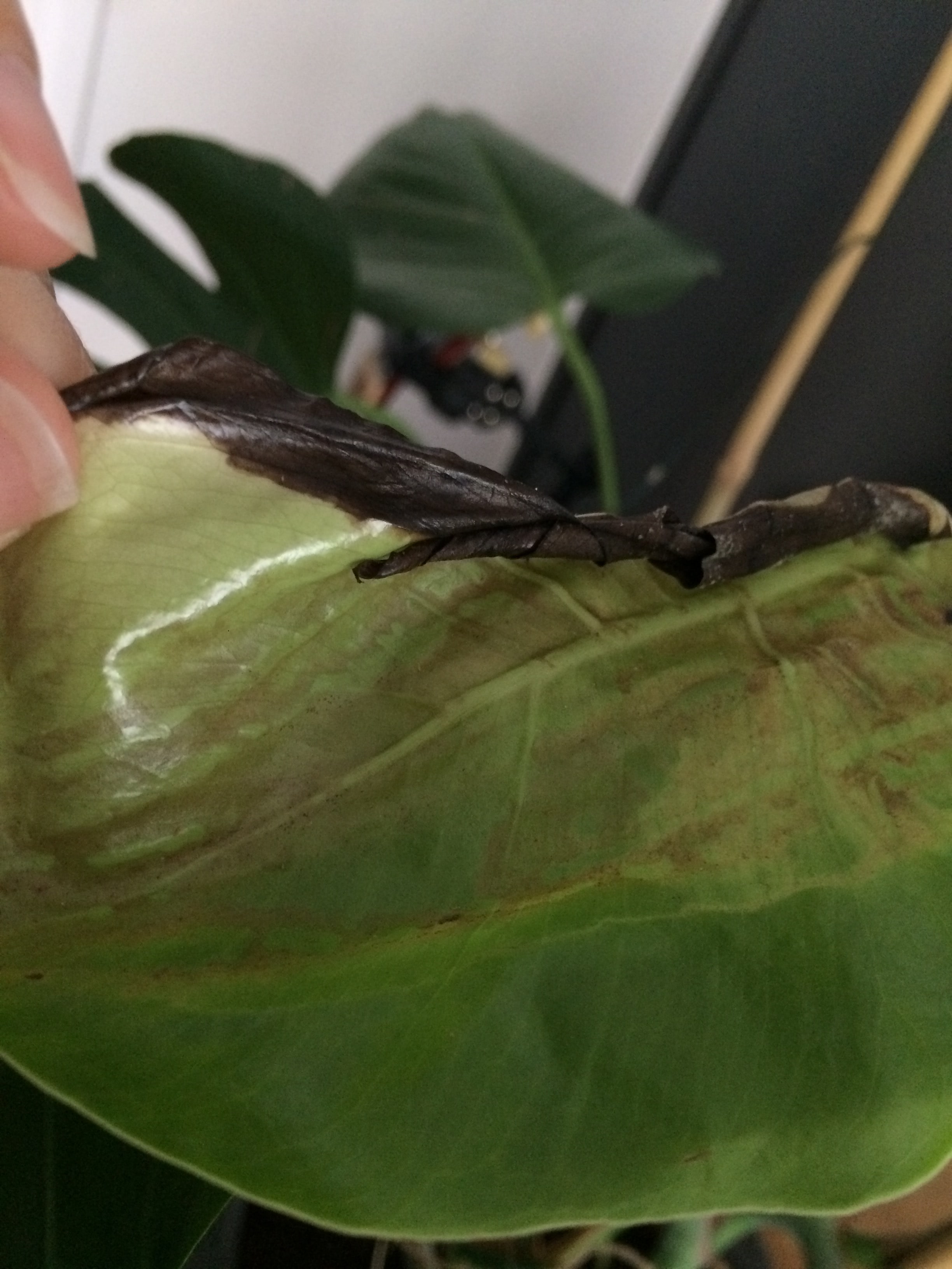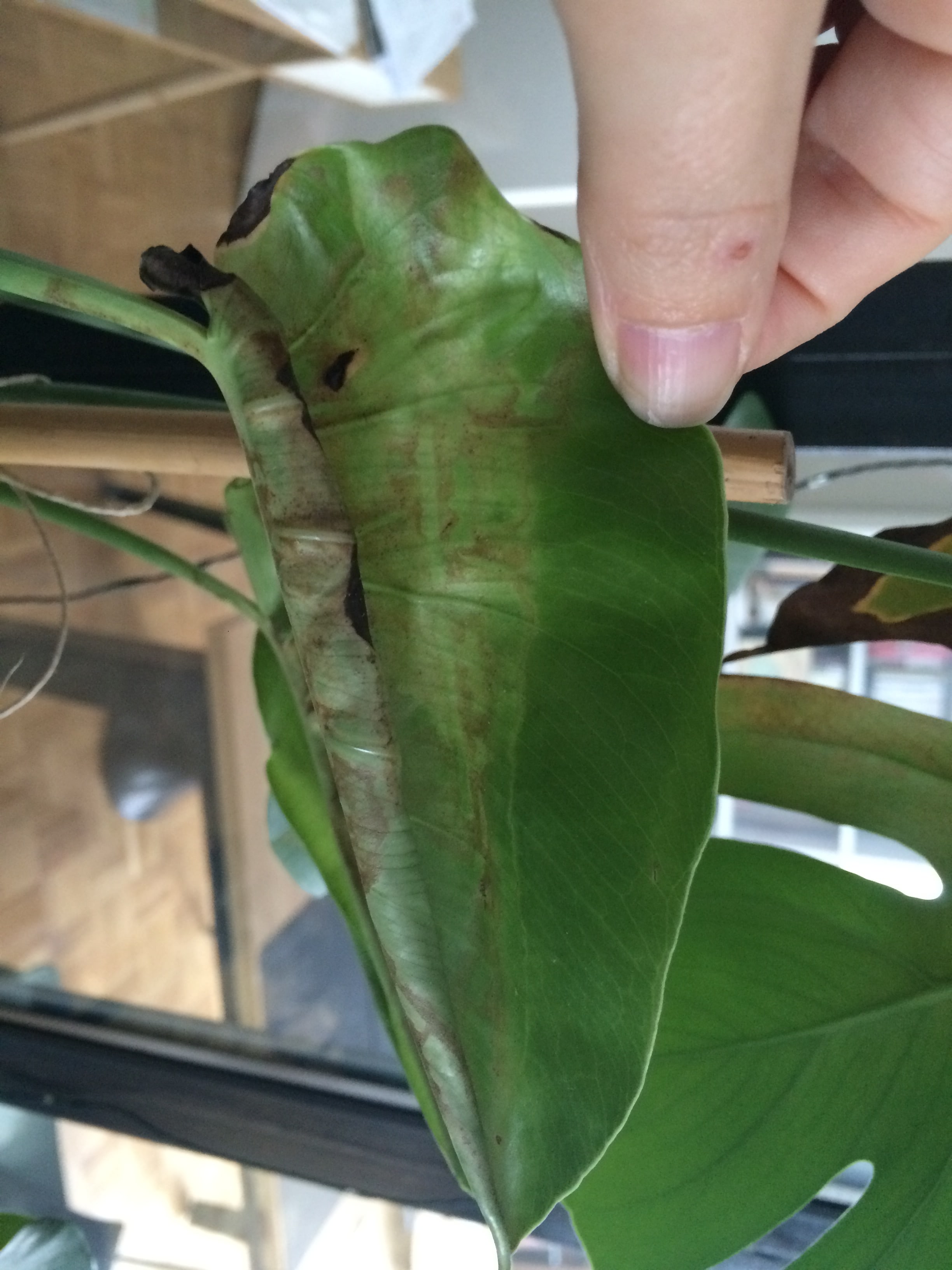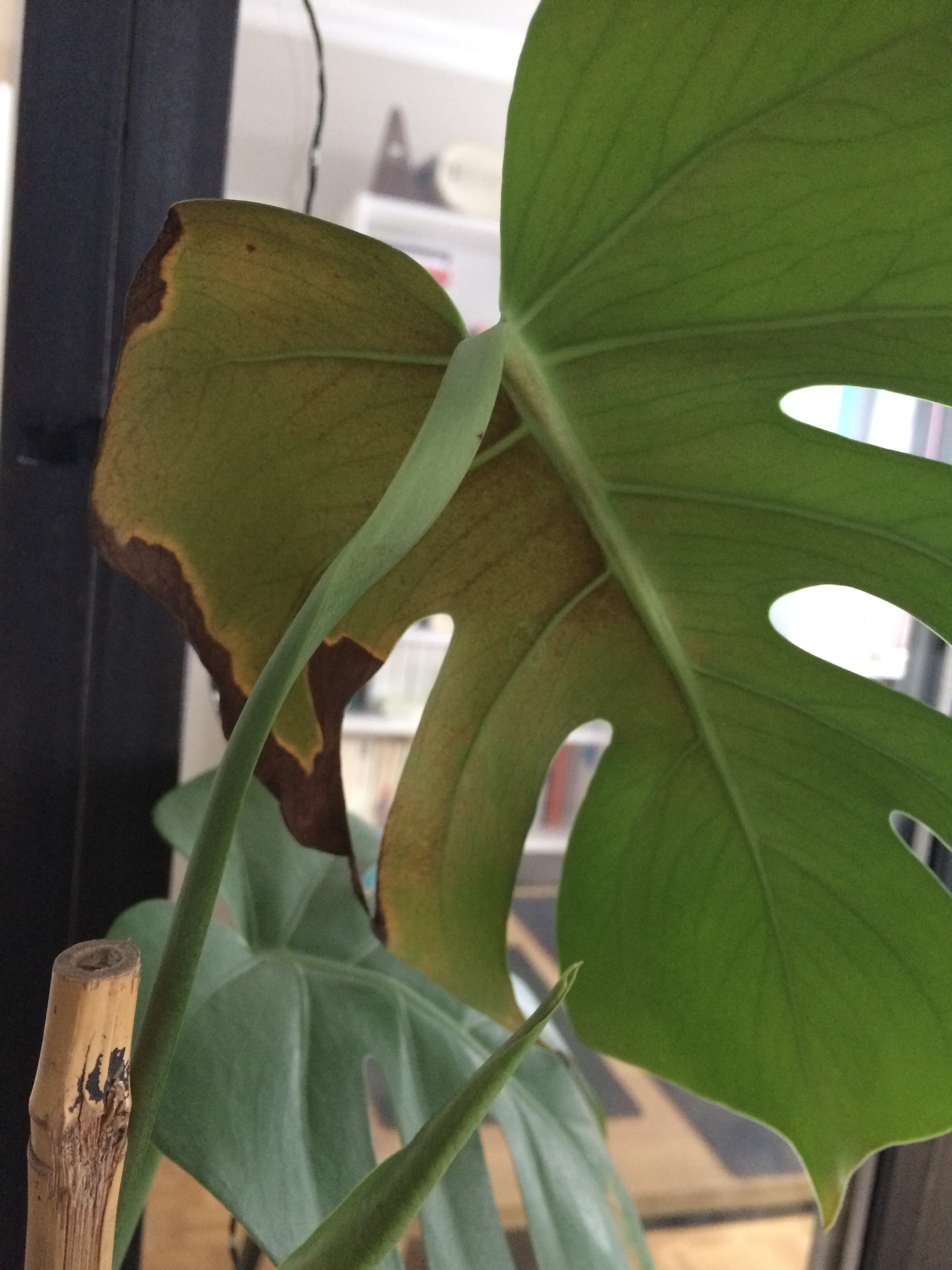 Ces 2 nouvelles feuilles ne se sont jamais déroulées et en y regardant de plus près j'ai découvert qu'elles étaient comme pourries à l'intérieur.