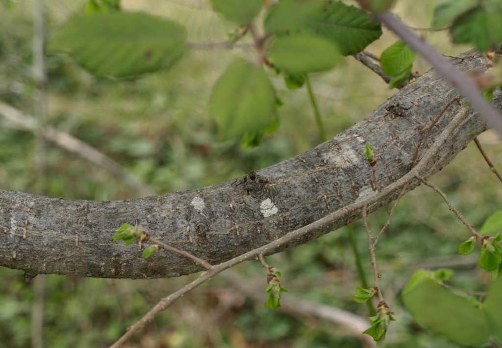 Les plus jeunes branches de ce prunus montraient nettement des stries horizontales sur une écorce grise et lisse.