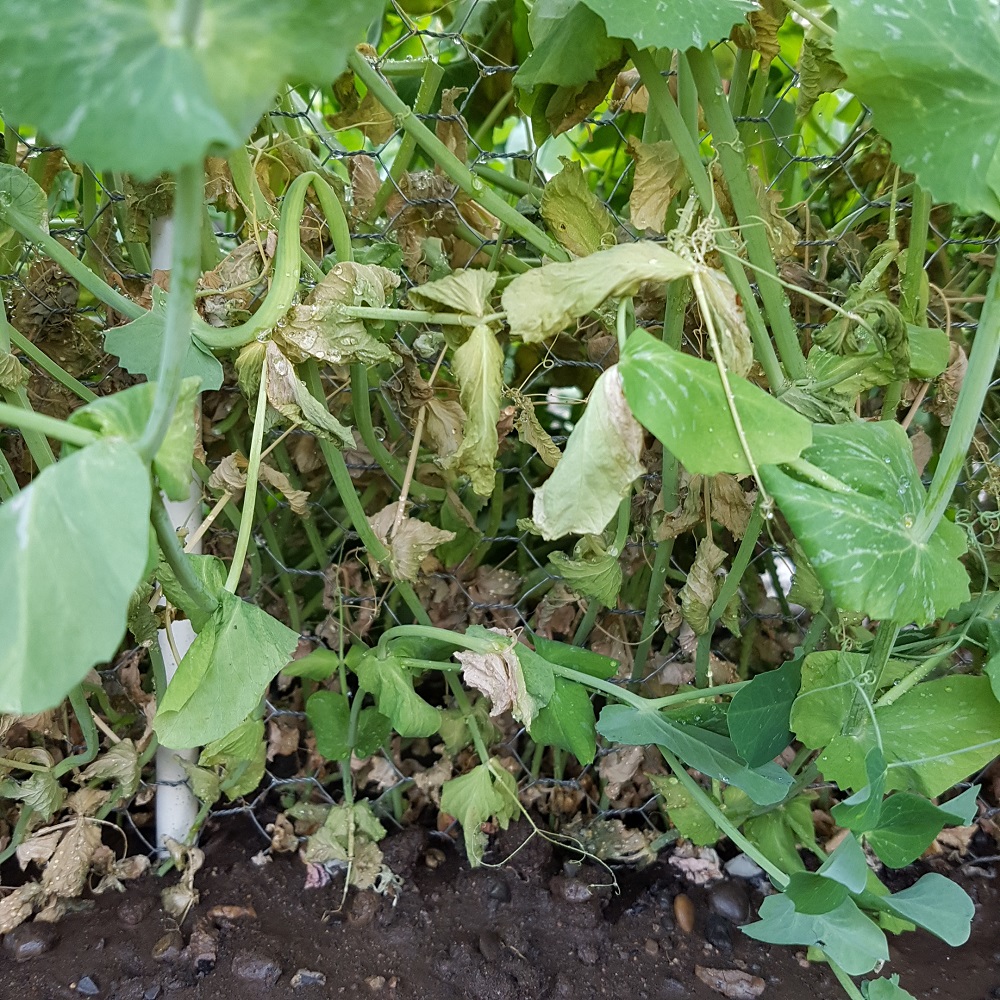 voici mes petits pois... tout allait bien depuis que je les ai planté il y a plus d'un mois mais hier j'ai vu que le centre des plants était desséché...