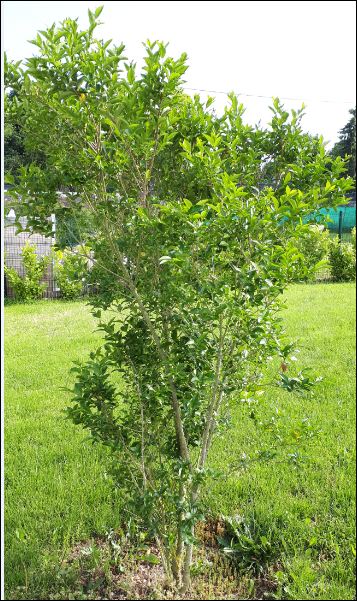 Petit arbre planté au milieu du jardin d'1,50 m environ sans fleur pour l'instant Arbre / arbuste inconnu n°5