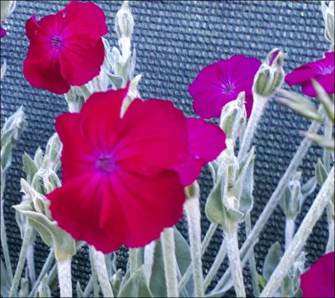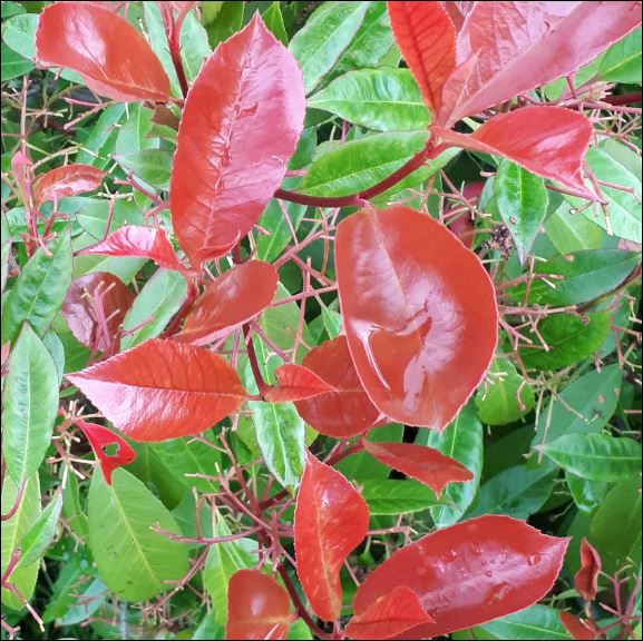 sous réserve de confirmation, j'aurais dit un Photinia, un saule tortueux (Salix matsudana 'Tortuosa'?), la 3e je vois pas (le gros plan est presque trop gros pour moi), et en dernier un Lychnis coronaria.