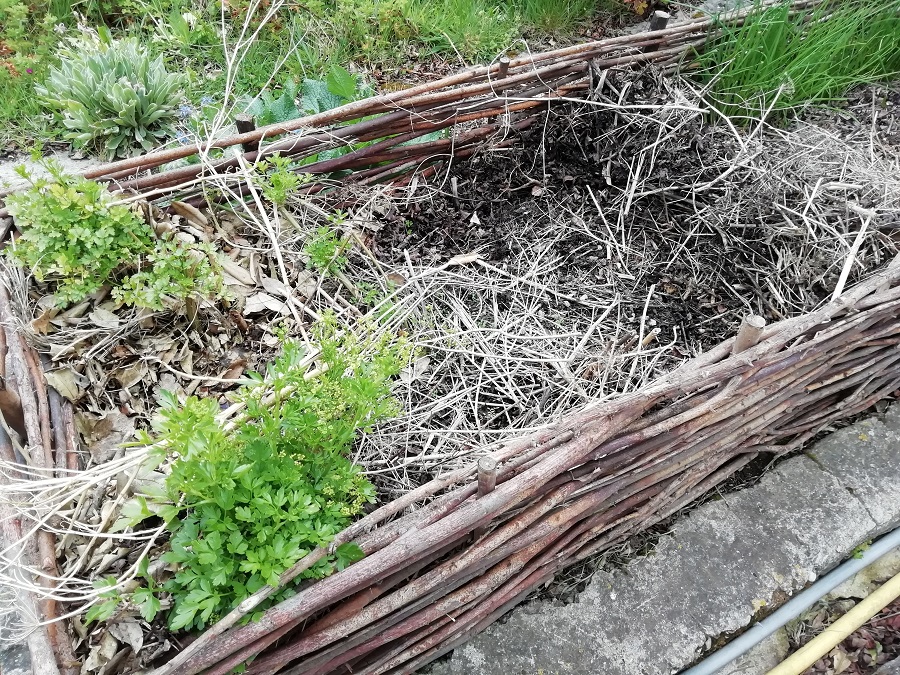 Vu les semis spontanés de persil dans l'allée à côté de la jardinière, je me suis dit que dépailler dans la jardinière pouvait être une bonne idée. L'intuition était bonne, en quelques jours j'ai vu apparaître des dizaines de pousses de persil !