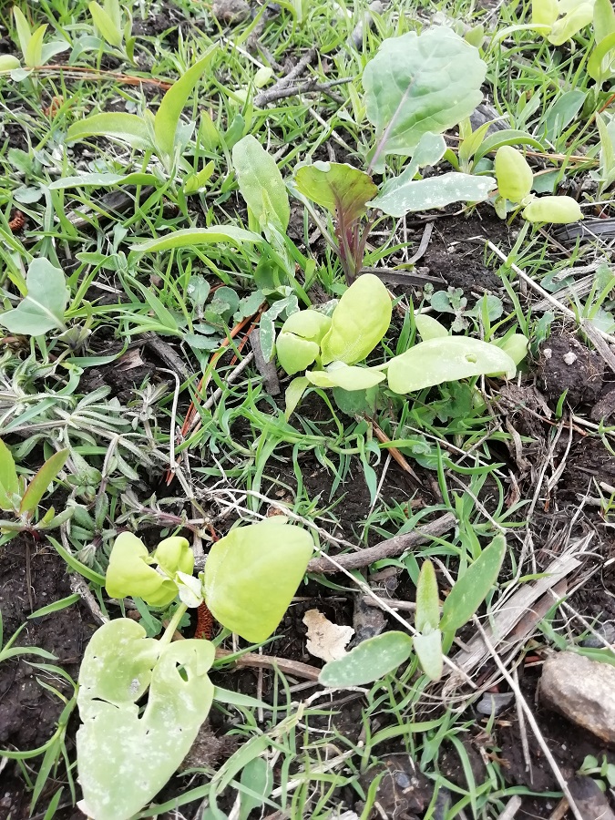 Même constat en butant mes PdT, j'ai eu la surprise d'y trouver des semis spontanés de choux rouge (parmi l'herbe, l'arroche, chénopode etc). Je les ai donc déplantés, l'occasion de voir que la terre était bien tiède...et toujours très froide sous l'épais paillage de la planche où je les ai repiqués.