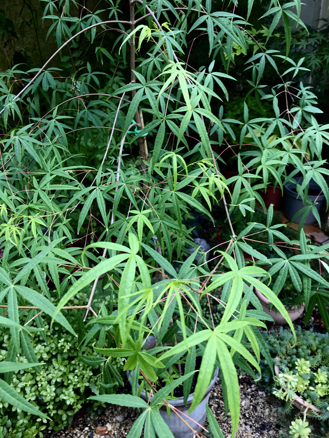 J'avais craqué sur ce graphisme singulier. Je crois que c'est un erable de chine, j'ai lu qu'il etait rare. Il est tres "poussant".