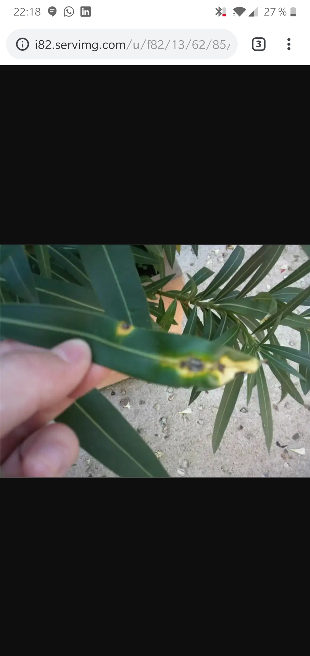je rencontre un problème sur les feuilles de mon laurier rose que je ne parviens pas à résoudre. Mon laurier rose est en pot et exposé sud ouest (en Île de France). Il grossit bien mais sur plusieurs feuilles depuis deux été j'aperçois comme des piqûres. J'ai trouvé une photo sur internet de ce qu'a mon laurier sans trouver la cause.