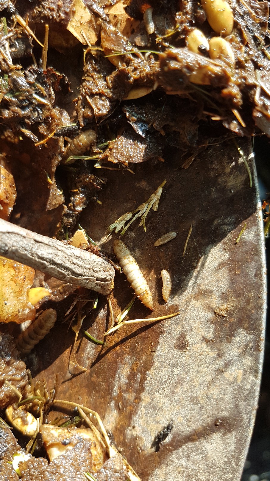 Je n'ai pas l’impression que ce sont des cétoines, mais des asticots de mouches et autre chose, plus gros...