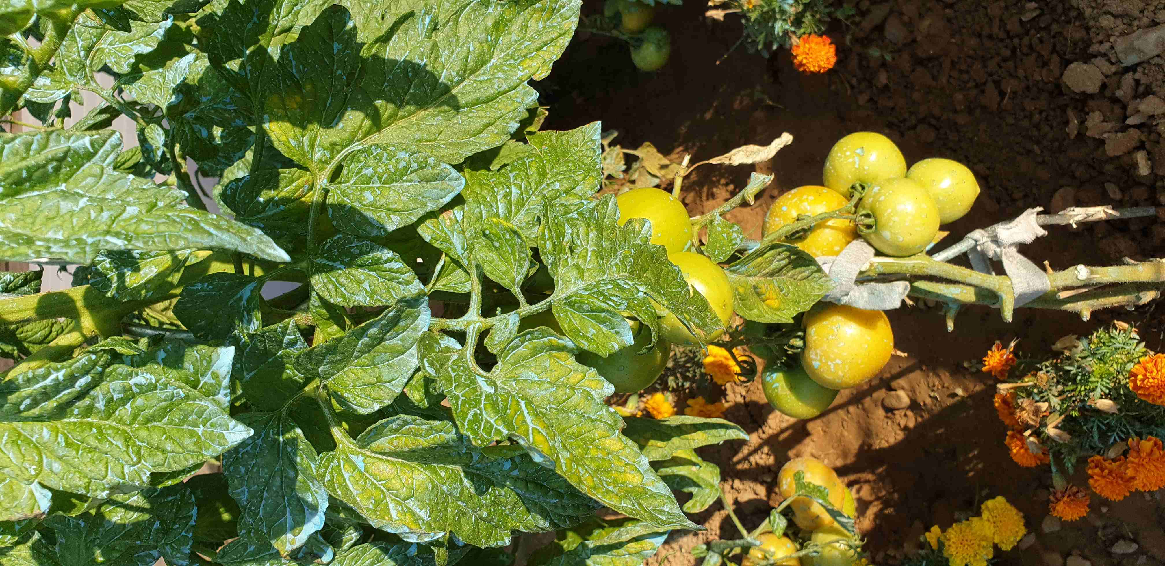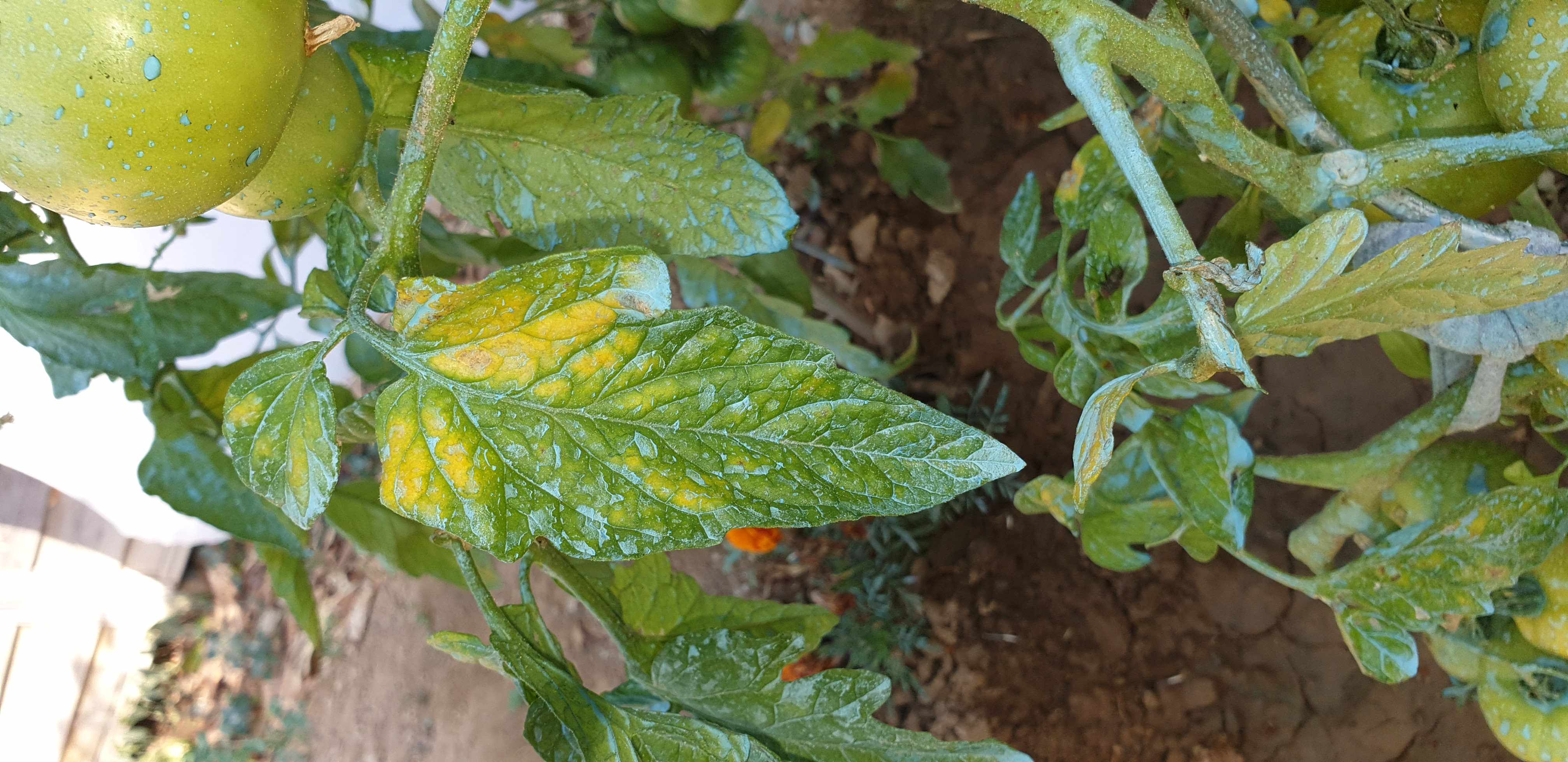 je ne suis pas un grand ponte de la tomate mais ca ne me parait pas inquiétant, je crois que les feuilles jaunes contrairement au mildiou trahissent soit une carence dans le sol, soit un arrosage irrégulier