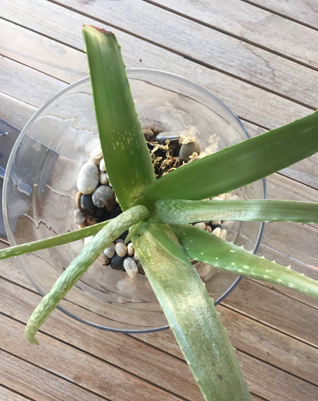 Donc : rempoter cet aloe dans un pot percé, avec un mélange de terreau et de gros sable (granulométrie de 2 à 3 mm au minimum), ne l'arroser que quand ce substrat est intégralement sec de haut en bas.