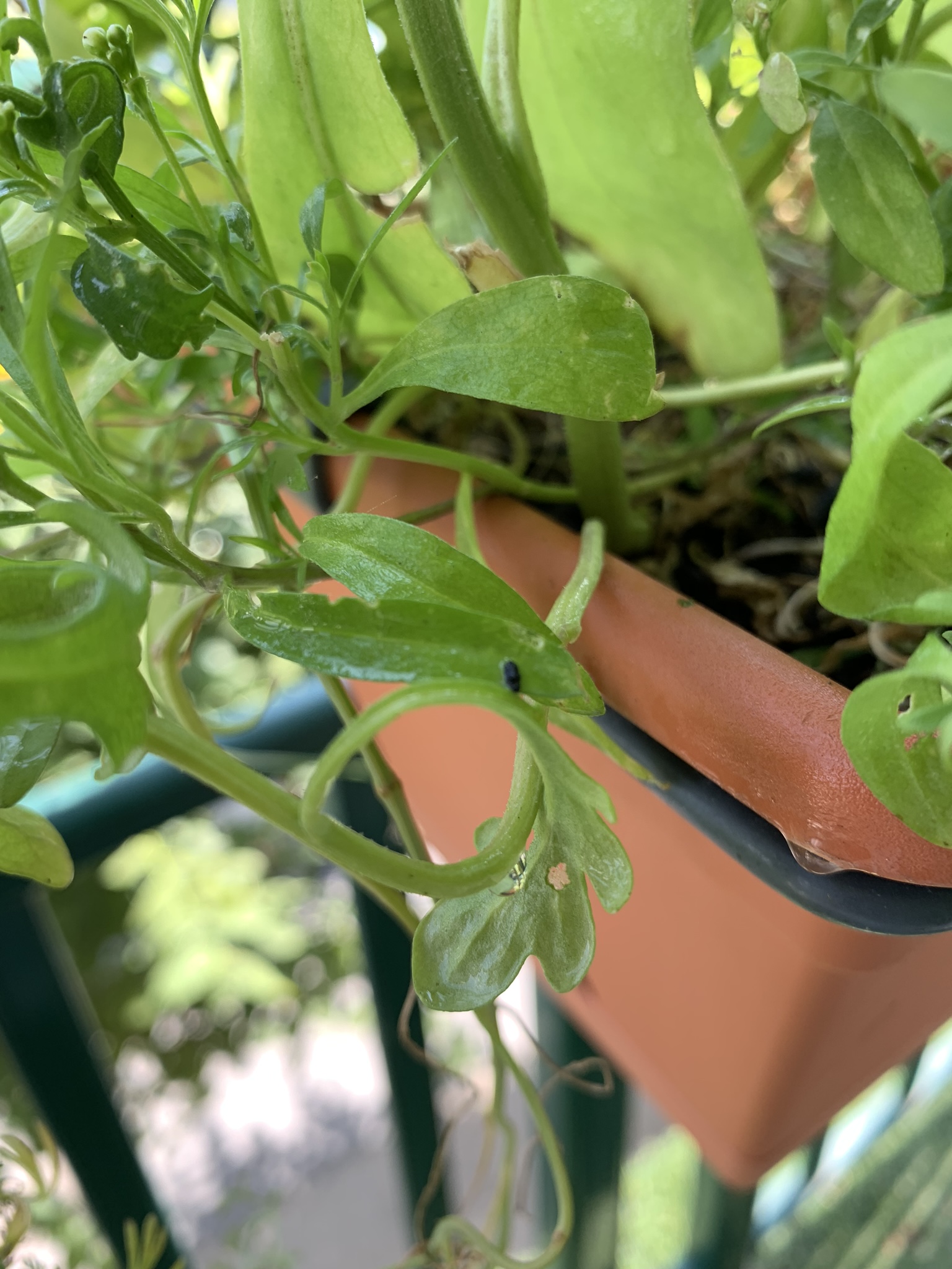Je suis nouveau dans le forum et dans le jardinage. Depuis il y a quelques jours, un insecte volant noir très petit mange mes plantes et mes fleurs et crée des trous. Les photos sont ci-jointes.