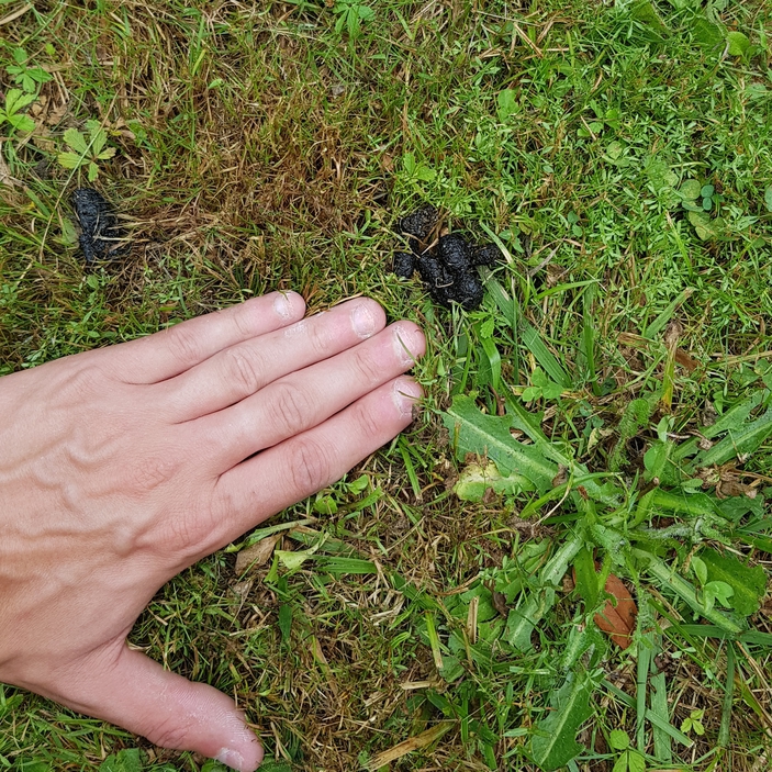 Cela fait un mois que je retrouve ces crottes dans mon jardin. Je les retrouvent un peu partout dans le jardin (sur 2000m2). A 90%, il y a toujours 2 3 crottes, rarement isolé.