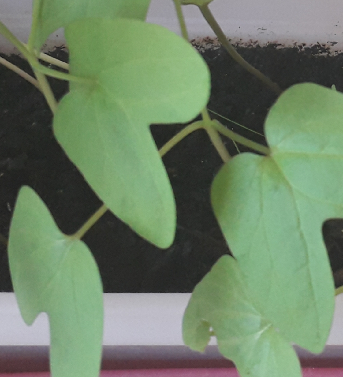 Les feuilles, la tige qui se se tortille comme pour grimper à quelque chose, l'ensemble de la plante.