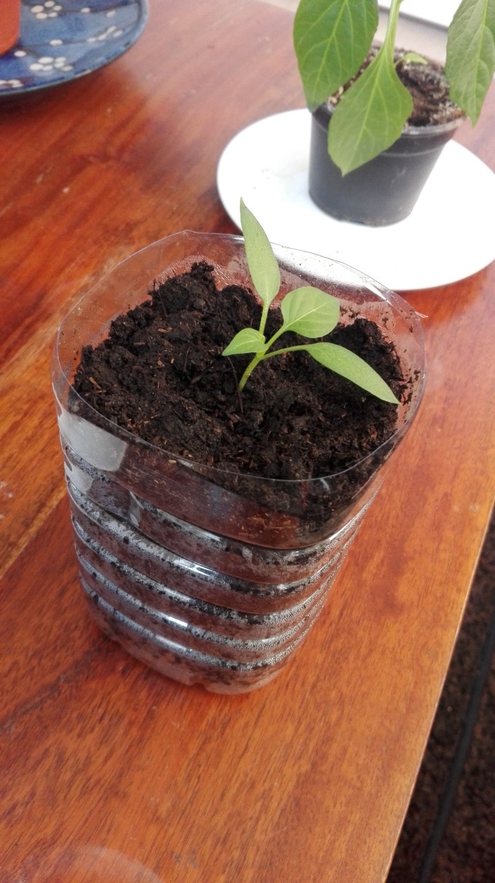 Il y a un mois j'ai décidé de planter les graines d'un poivrons acheté au supermarché en pensant que ça ne pousserait jamais. J'ai planté 6 graines, et a ma grande surprise les 6 ont germé. J'ai attendu que les plants grandissent d'environ ~7cm avant de les rempoter (en suivant plein de tuto sur internet). Je leur ai mis un peu d'engrais liquide acheté dans le commerce.