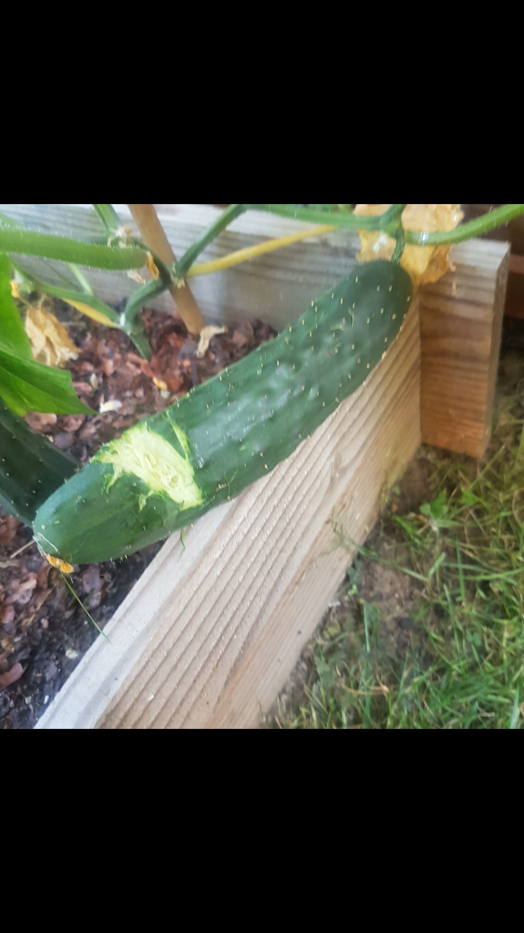 Horreur de bon matin, je découvre que l'un de mes concombre a été grignoté mais j'ignore par quoi. J'ai tout de suite pensé à une limace mais aucune trace, ni bave. Oiseau ? Si qqn pense à qqch et à une solution je suis preneuse ! Merci.