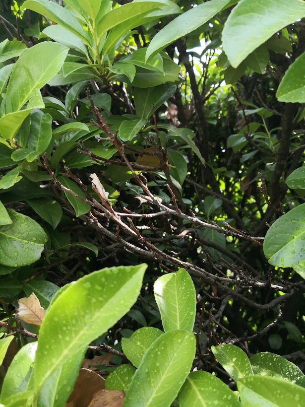 Si je compare au restant de la haie, Je constate que les feuilles piquent un peu du nez.