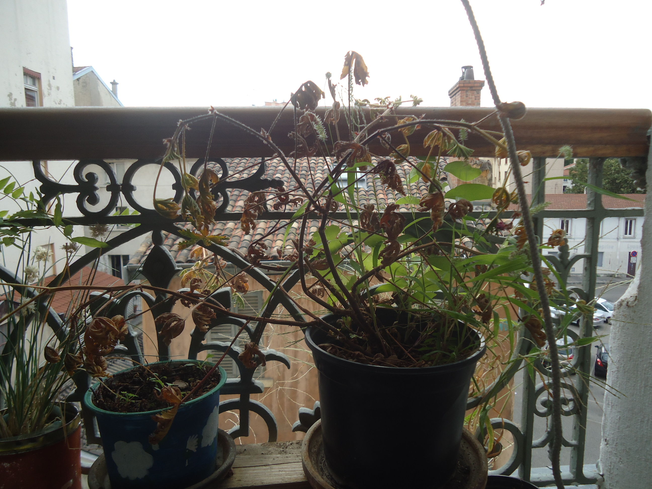 Je l'ai installé après les gelées sur mon rebord de fenêtre, plein est, au centre de Lyon. Il a fleuri au printemps jusqu'en début d'été, j'ai appris qu'il fallait retirer les fleurs fanées ce que j'ai fait en juillet, il allait bien jusqu'à il y a quelques semaines : les feuilles se recroquevillent (pas spécialement vers le haut), la section des tiges se "rabougrit" comme si elles se vidaient de leur contenu (voir photos, je trouve pas les mots). L'ensemble jaunit progressivement, mais ce ne sont pas des tâches ponctuelles comme la rouille. Je n'ai trouvé aucune bestiole ou autre susceptible d'agresser la plante (je n'ai pas déterré la plante pour chercher sous terre).