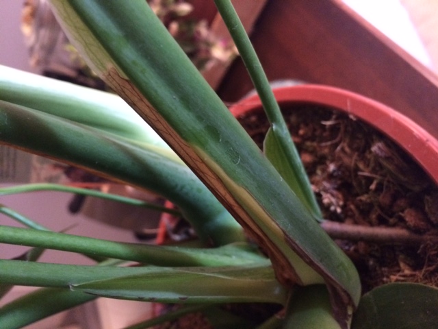 Pour le brunissement sur les tiges c'est normal, c'est là où se sont formées les feuilles actuelles, à la longue ça se dessèche.