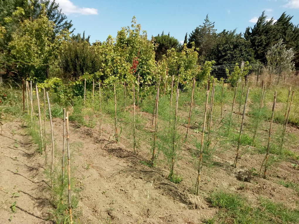 Mon carré d'asperges. J'ai semé des lentilles (de consommation) entre les rangs, en guise d'engrais vert. Mais elles ont produit ces garces ! La lentille est un légume sec très facile à cultiver et je l'apprends par le biais du hasard !