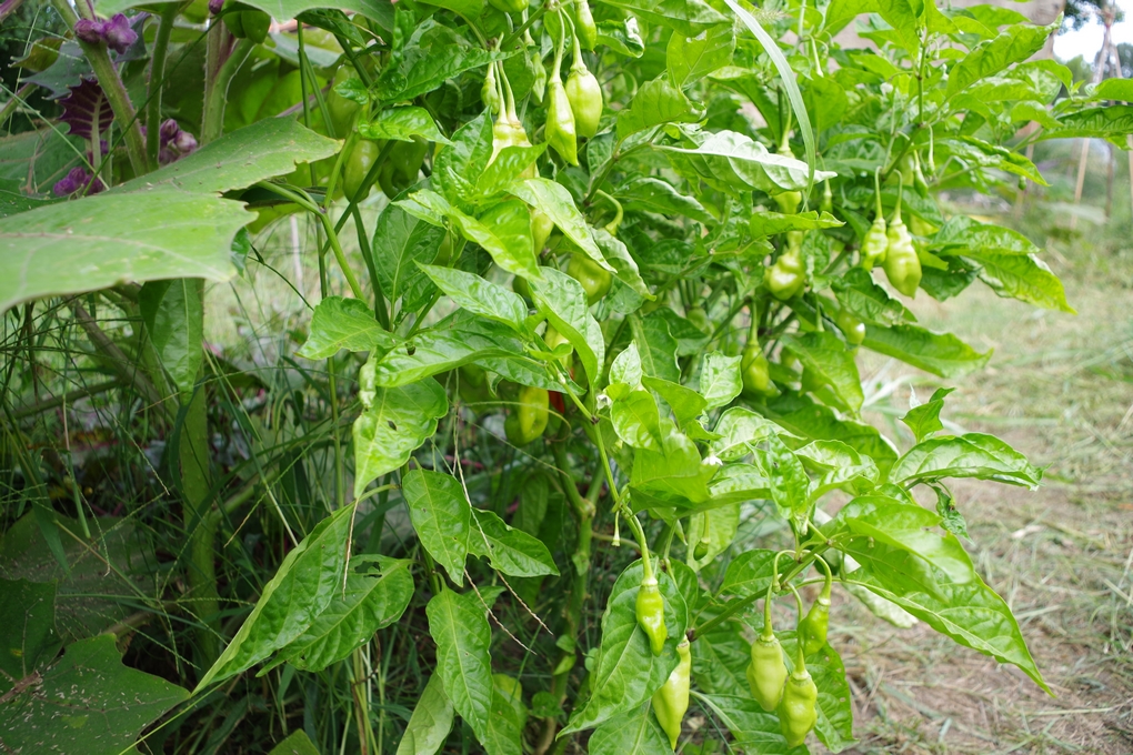 J'ai également expérimenté tout un tas d'espèces tropicales. Le piment végétarien, le naranjilla (que l'on voit sur la photo ci-dessous), le quinoa, le gombo, le curcuma, le gingembre, etc... Tout a fonctionné, mais pas toujours de manière rentable. Certaines espèces ont un réel potentiel sous nos latitudes.
