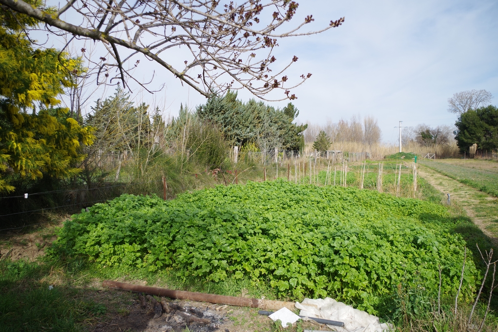 Toute parcelle de terre laissée a nu a été semée avec de l'engrais vert. Pour la partie Sud, j'ai mis essentiellement de la moutarde blanche, qui s'y plait beaucoup. Sur la partie Nord, je suis resté fidèle au couplé seigle/vesce. J'ai semé en luzerne toute la partie à droite du chemin. Que je comptes laisser en luzerne pendant 2 ou 3 ans. Avec des fauches périodiques et laisser sur place les débris de tontes.