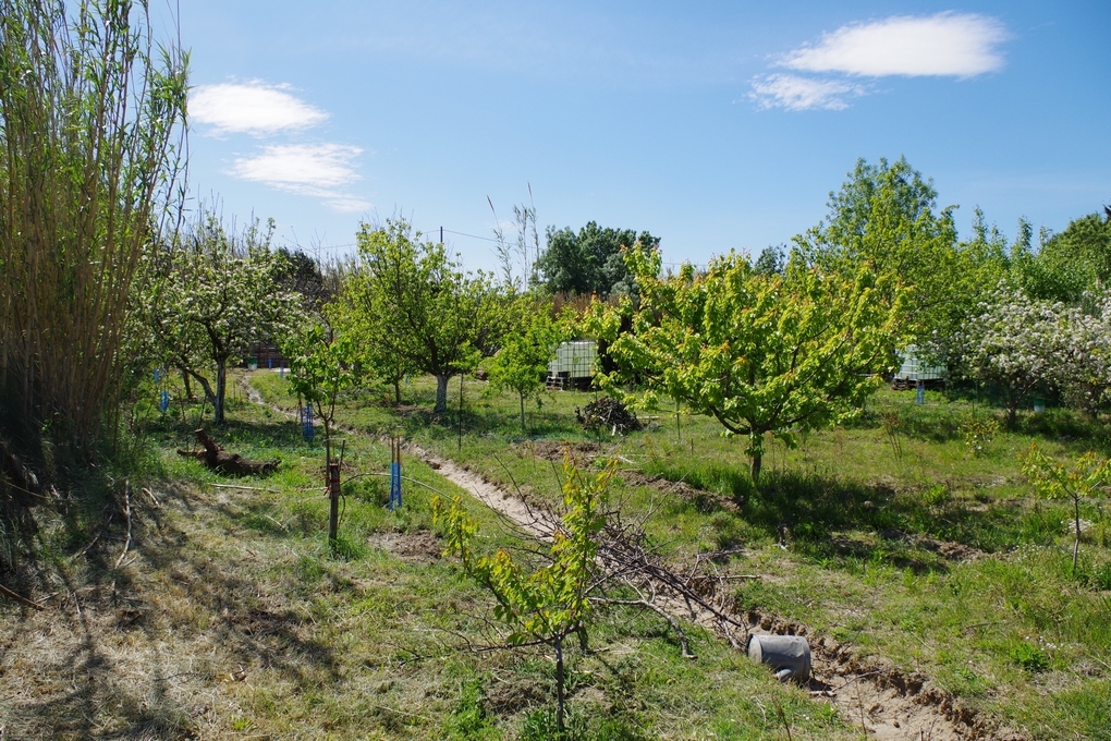 Vous remarquerez que j'ai planté certains arbres sans respecter d’alignement. C'est fait exprès. Peut-être que je le regretterai un jour, mais je suis parti dans une logique "agroforesterie". Donc qui dit agroforesterie, dit forêt, donc pas d'alignements.