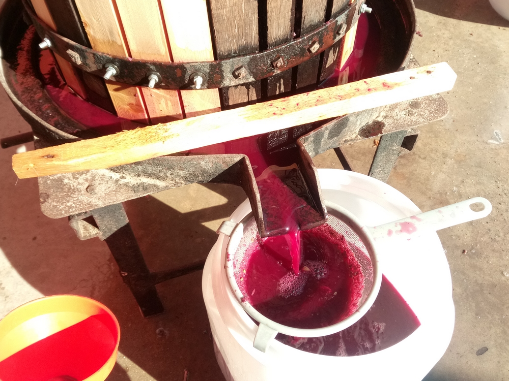 Du coup, cette anée, nous avons pu extraire 250 litres de vin. Ce qui sera largement suffisant pour la consommation familiale (boisson, cuisine, troc). Eh oui, une bouteille de vin, pour nous qui privilégions le troc, c'est une monnaie alternative très efficace !
